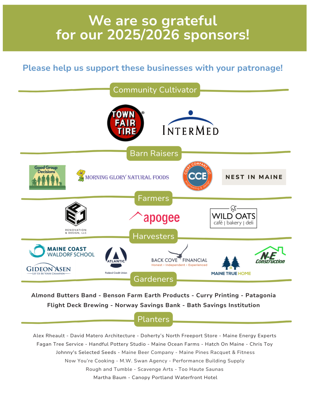 We are thankful for the generous support from the following businesses and grantors in 2025.