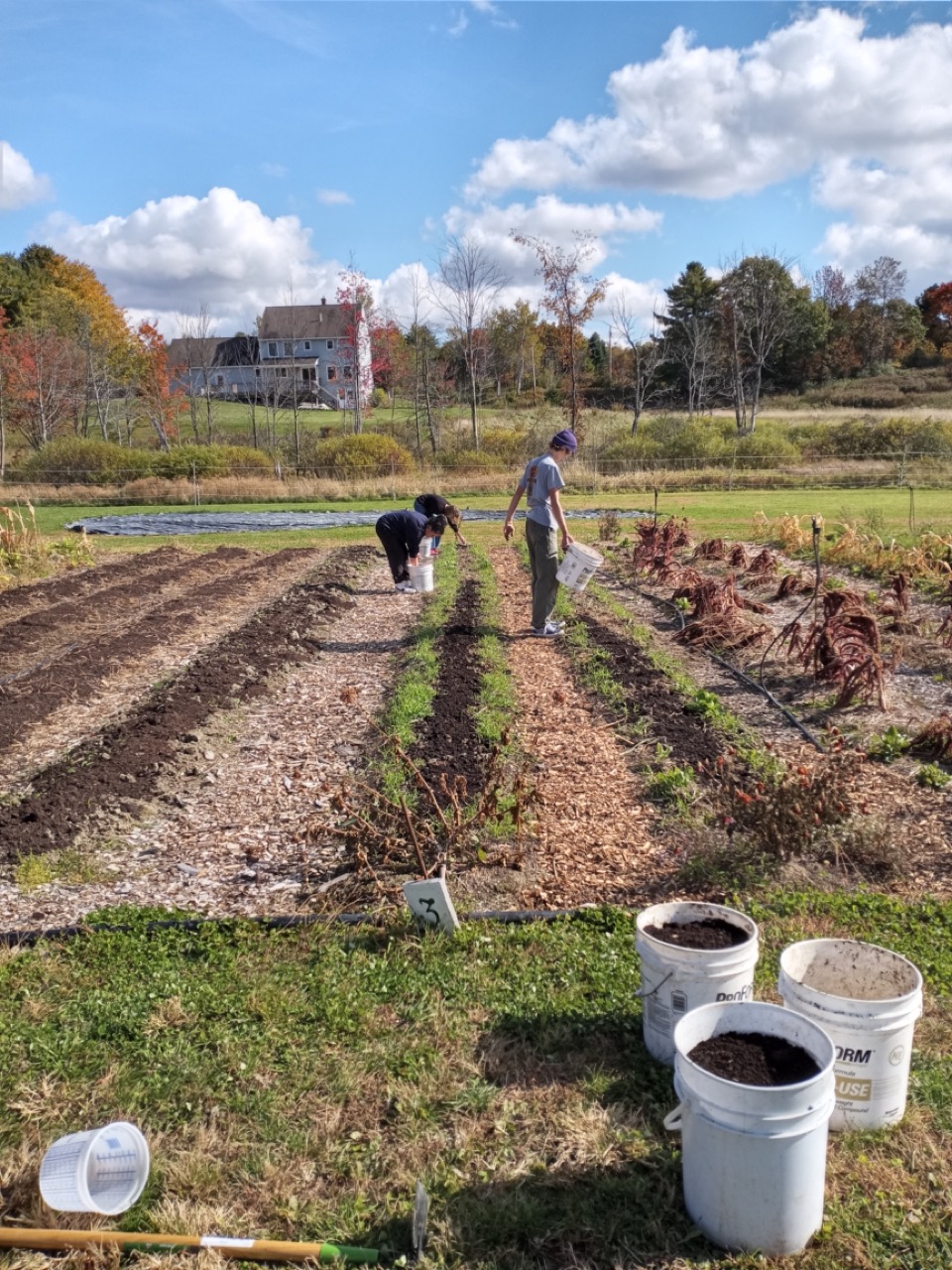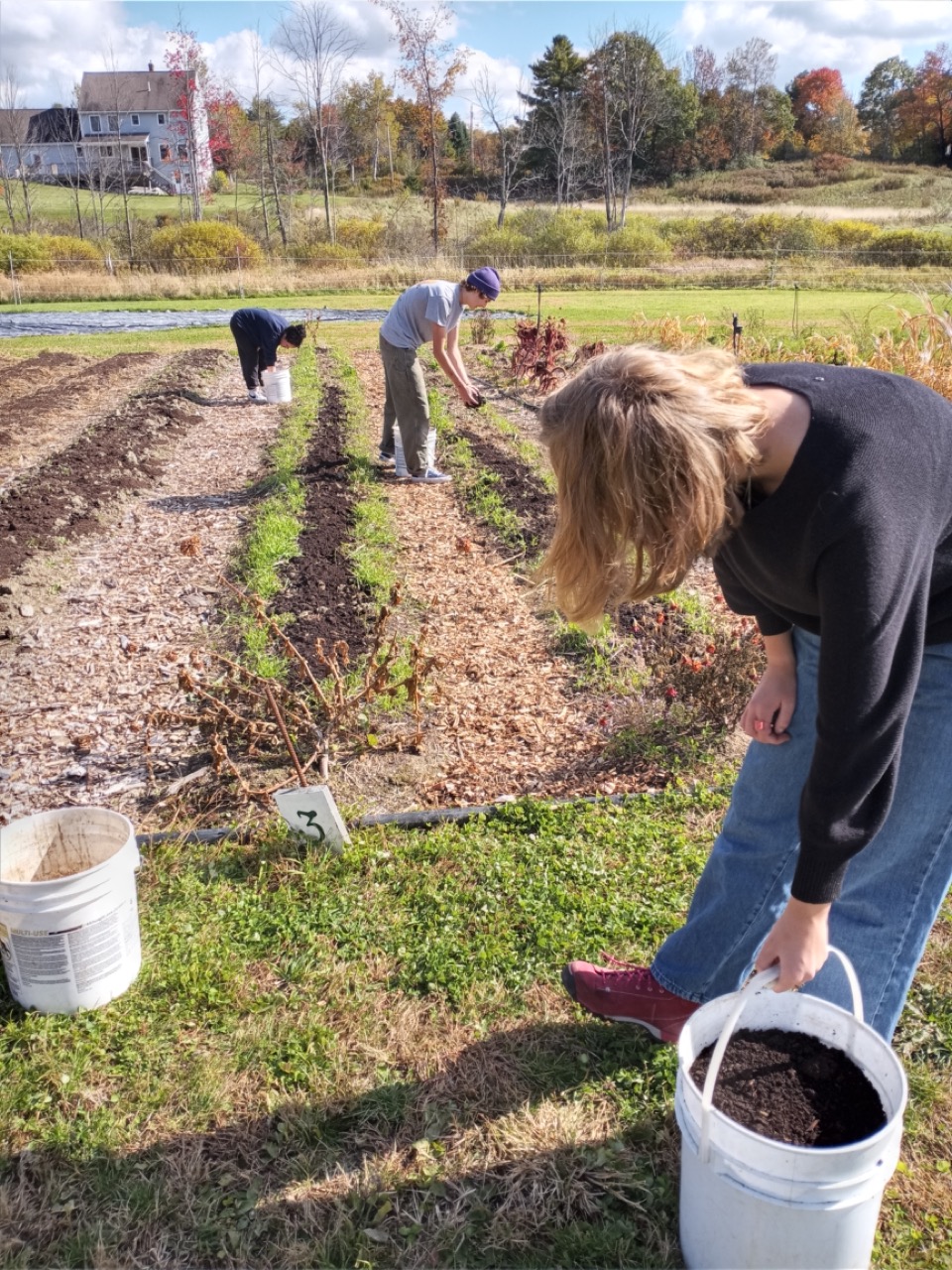 Another group of high schoolers came from the Maine Coast Waldorf School on Tuesday afternoon. They were lucky to be able to work in some warm sunshine as we had them do some weeding, lay down cardboard with wood chips, spread compost, and sneak in some more winter rye plantings. Two hours of work from 9 individuals adds up to much being accomplished in an afternoon. Last year, in the spring, we faced so much mud, weeds, and tough grass in our walkways. It’s nice to have all this help so we can be proactive with this issue. Thanks for choosing G2G for your service visits. You’ve made an impact.