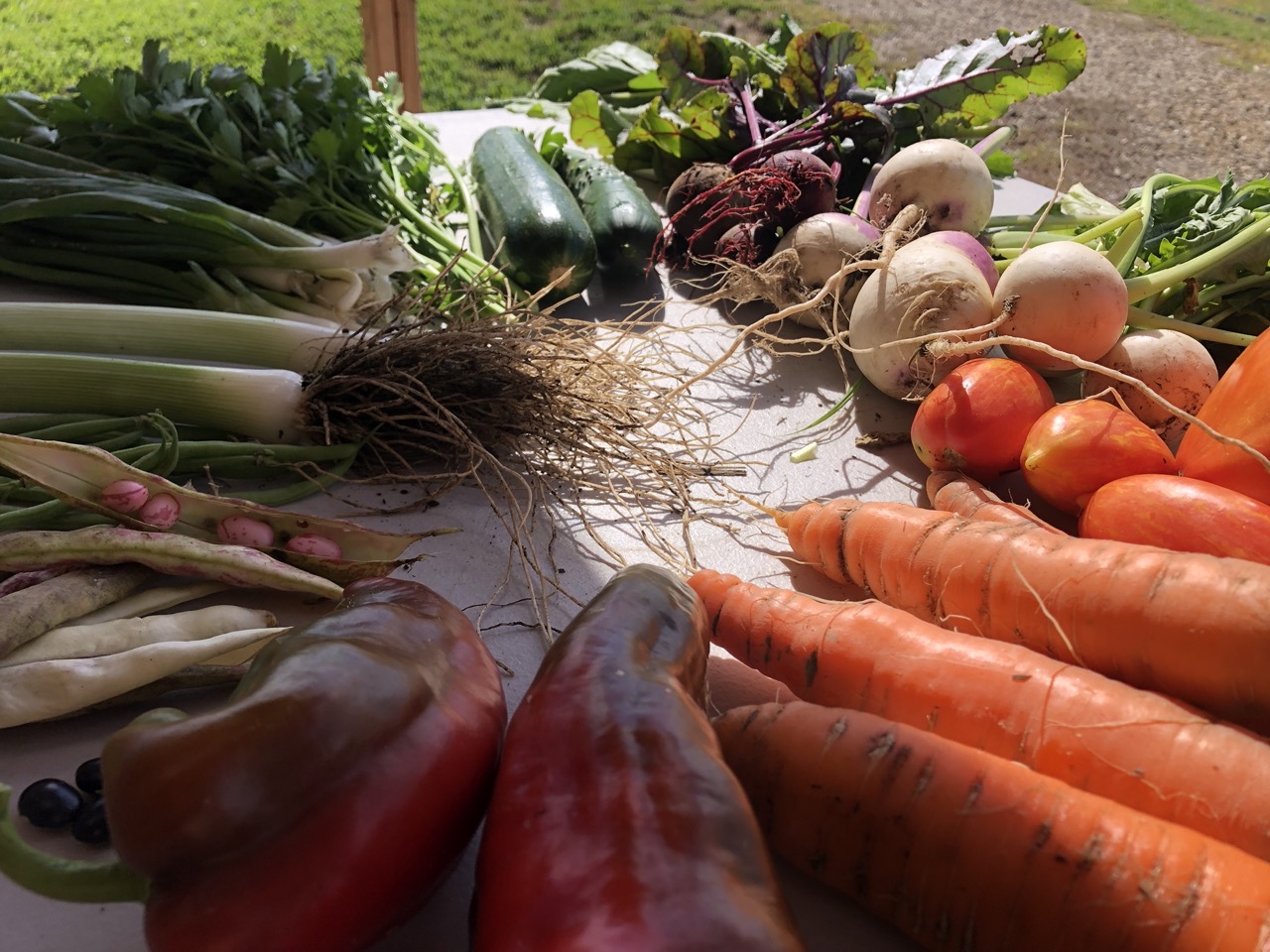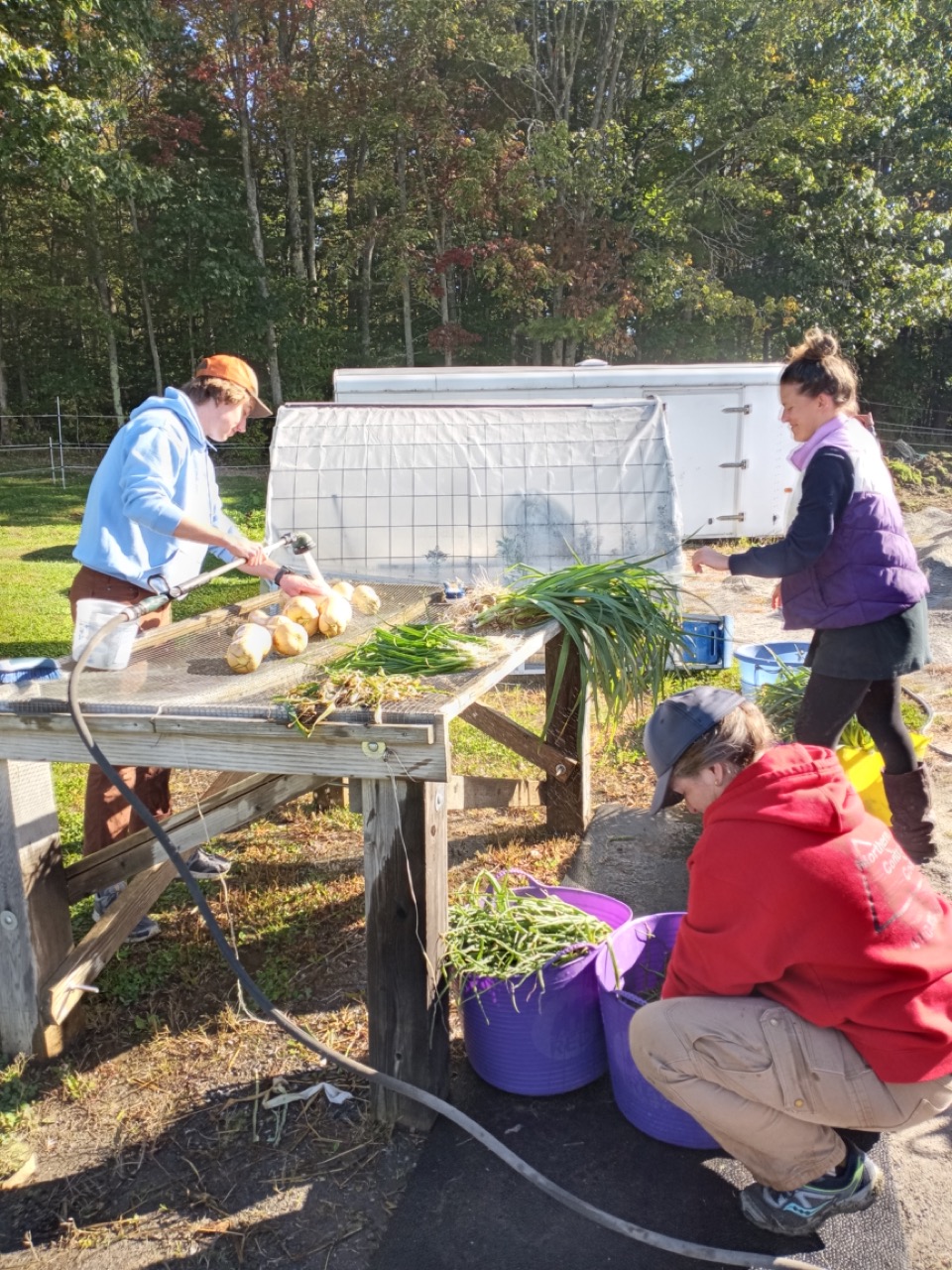 John also had some great insight into making our operation flow easier. We hope to move the wash station closer to the tool shed where we weigh and pack the vegetables. The tool cleaning would then be closer to the tool storage–fewer steps in both cases. There should then be a complete circle for traffic, without trucks and cars having to back up. Drive up to the tool shed, pack your vehicle with freshly picked vegetables, and off you go!