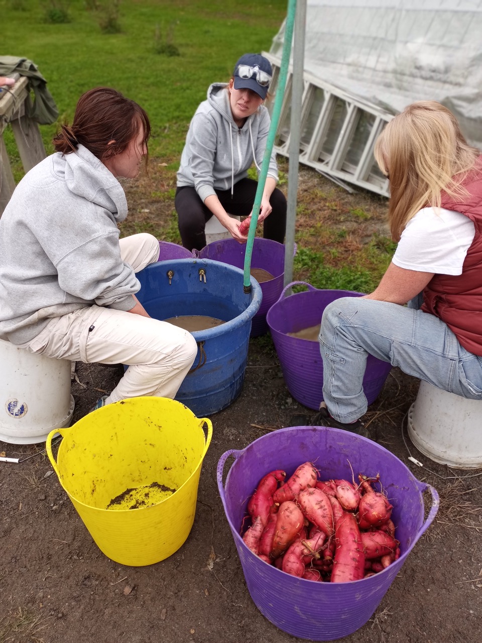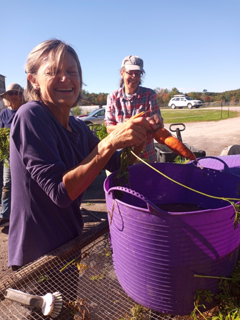 On to accomplishments from the rest of the week. As our poundage numbers start to decline, you can see from Carrie’s photo there is still a nice variety. Marie, thanks for working so hard on cleaning up those bunching onions.The 4th graders spied them and were eating them raw! We still have some impressive carrots, and the sweet potatoes weren’t too shabby either.