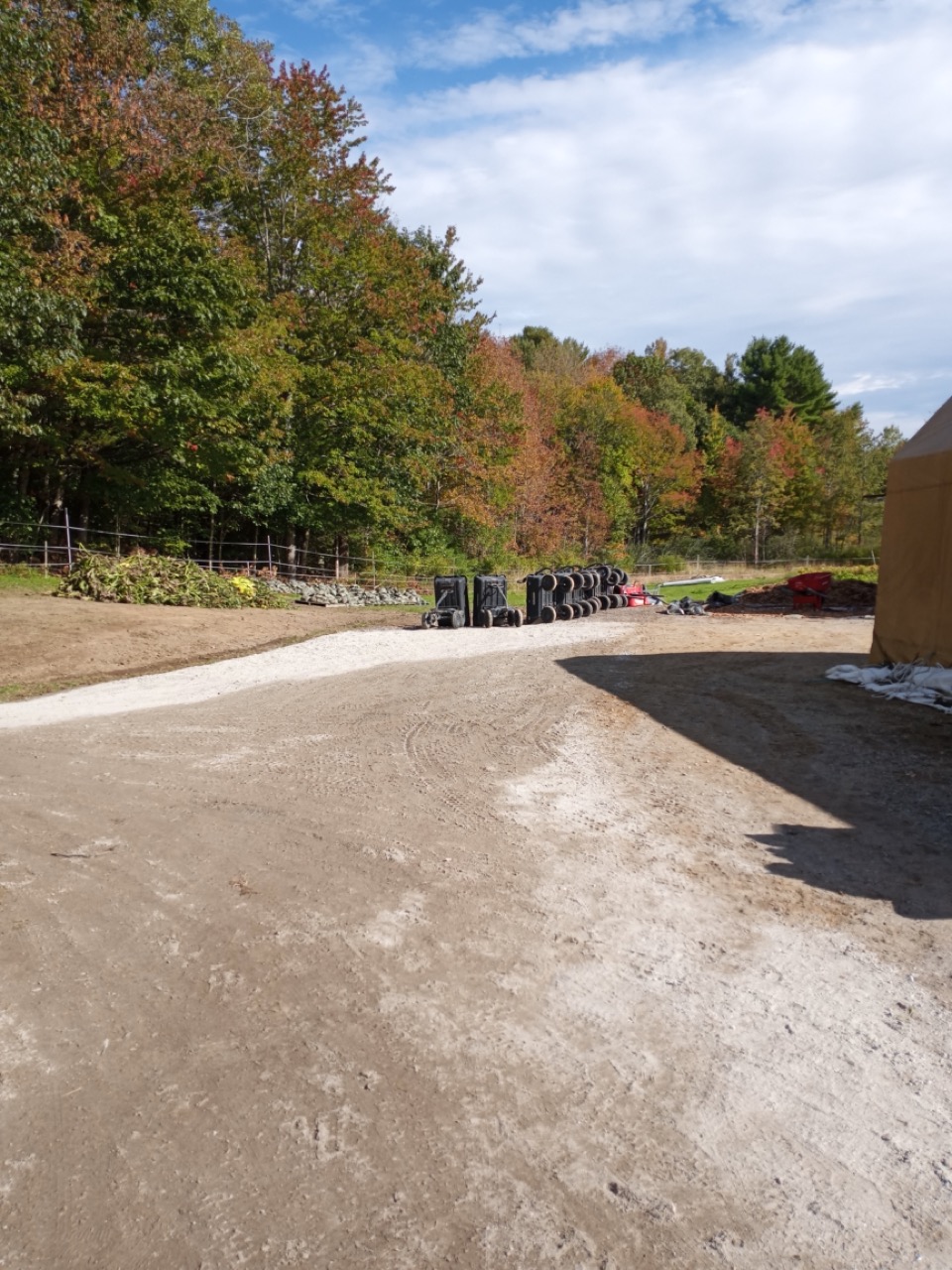 John Newlin has been going to extraordinary efforts to get our new gravel pad in place this Fall. We have some big plans, and it starts with the new expanded pad. Last Spring everyone was carrying seedling trays back and forth between the Rimol greenhouse and the seedling trailer. It is always extremely slippery and muddy those first couple of Spring months, and I have to urge everyone to be careful. We always have a couple of elderly volunteers who come to plant seedlings and getting them in and out of the greenhouse workspace is nerve wracking. The other part of this is that the greenhouse, which is designed to be used to grow an early crop, is being used to be a seed starting station and a hardening off/holding area for the young seedlings. This ties it up into June. After talking with Carrie and Patty, we collaborated on the idea of a smaller Rimol greenhouse that would have multiple purposes. First we want it to be a seedling house that is handicap accessible. It will have tables (built by our fabulous fixers) on wheels, so we can easily maneuver them. This will be a space that we can also use for the gleaners in inclement weather, a gathering place for our school groups, and a community workshop space. We would love to host more informational workshops without worrying about the weather.