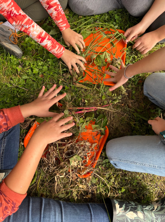 The Brunswick 5th graders came to the farm on Monday, Wednesday, Thursday, and Friday. That was 320 extra hands! This was part of their science curriculum and learning about nutrient cycling. They first went to CREA (Cathance River Education Alliance), and then we were the lucky farm to host them on a later date. We had them build lasagne beds with cardboard, goat manure, and straw. They were good sports about shoveling that manure! They ran around the farm taking soil samples from various locations, including the woods, and discovered worms, beetles, bees, and, of course, the goats. Melanie reports that many asked if they could come back. Great job on everyone’s part to get that level of enthusiasm. The goats need to be thanked, too, for all they do as ambassadors for G2G.