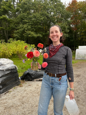 We also have an abundance of flowers for picking. Diane couldn’t resist trying for another “make a bouquet for a G2G donation” pop-up in Falmouth. I’m not sure how she made out, but, if nothing else, she got to enjoy picking and sharing flowers with friends. Mary goes for the honeycomb dahlias.