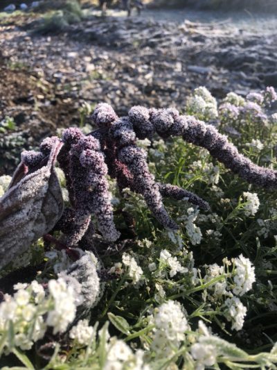Poor Genevieve! She told me she could not feel her fingertips on Monday. The team still sent out almost 200 pounds of 14 different varieties of vegetables and herbs. Thanks, everyone, for bundling up to face the cold and sending fresh food to 5 different locations in our community.