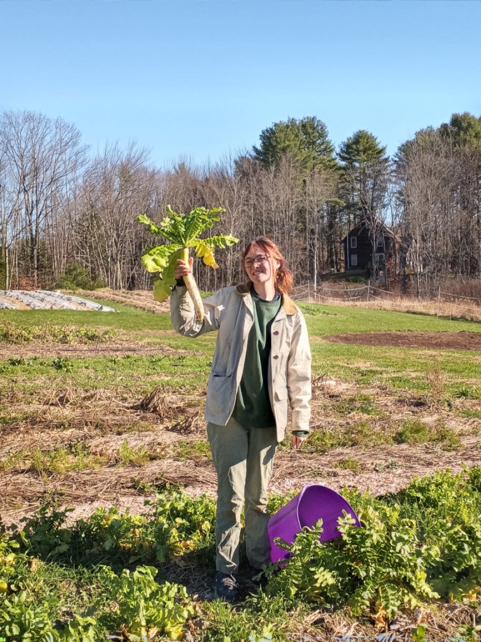 Genevieve went out to harvest some more daikon radish from my brother Tim’s cover crop plot in lower 5. My brother is a farmer who lives in the buckeye state. We have bonded most recently over cover crops and no-till.  He is a great source of information on no-till farming and cover cropping and is always telling me which farm YouTube videos to watch. He sent us a couple of cover crop mixes to try, so lower plot 5 is “my brother Tim’s plot”–one member of my family.