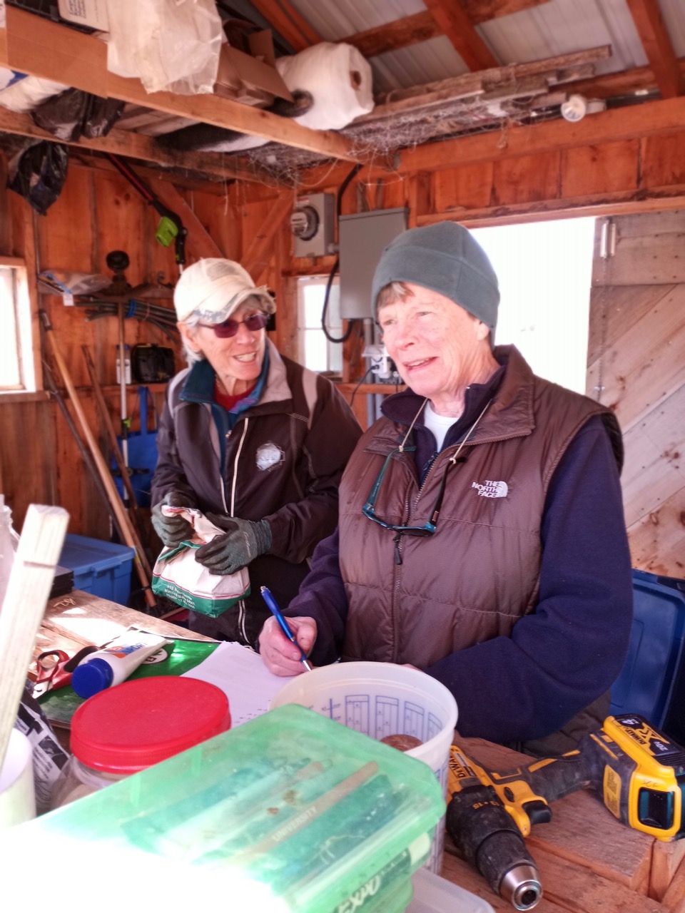 I asked Diane and BJ to help with some end of the season chores. So BJ and Carol went into the garden shed to do an inventory of fertilizers and seeds, and Diane did a lot of cleaning and organizing.