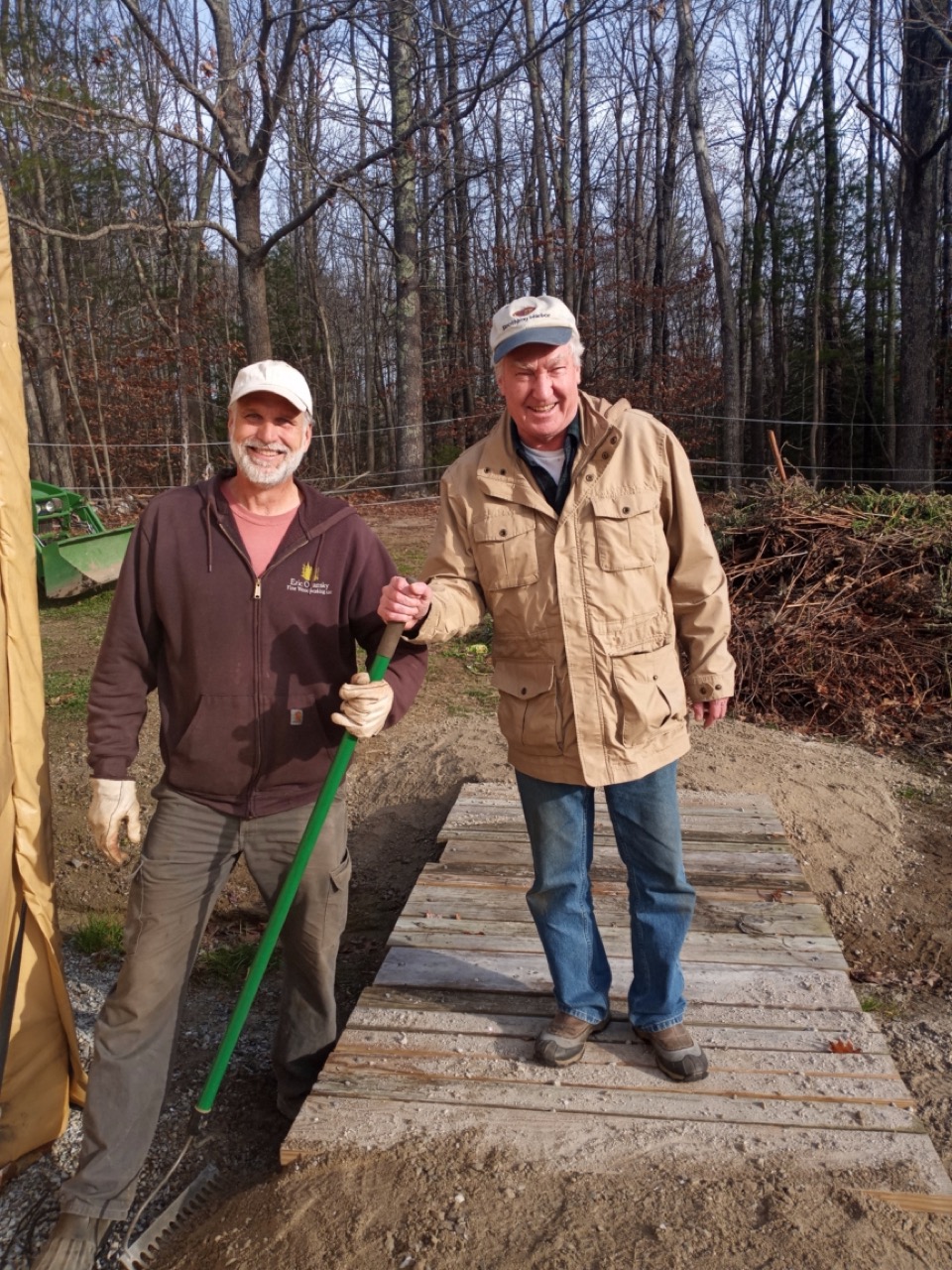 John Newlin installed another bridge to cross over the wetland that everyone insists on traveling through to get to the compost pile. I thought we should name it, and, because it was one of Tom’s first fix-it projects, it will now be called the Honorary Tom Fitch Compost Bridge (ribbon cutting ceremony in spring 2023). I must add it was installed way ahead of schedule.
