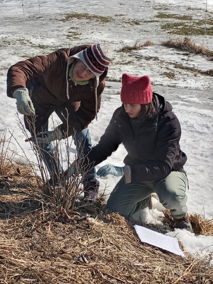 Carrie had compiled a list of our plants and the appropriate time for pruning last fall. It was a great guide to take out with us into the fields. Some plants already have buds swelling and the pussywillows are coming out, too! This latest snow cover is actually good to protect those plants which are producing new growth at ground level. These roller coaster temperatures aren’t good for any of us and can cause plant stress and even plant death.