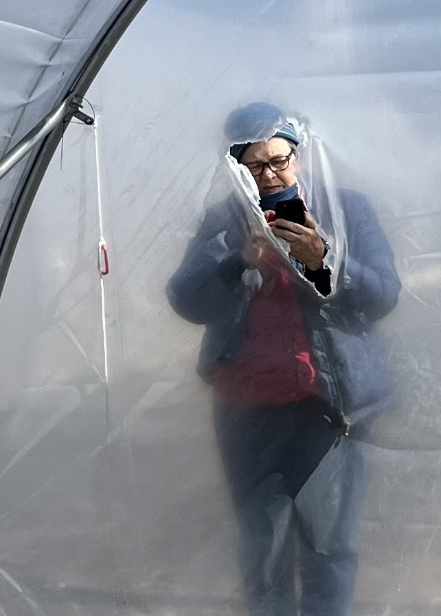 While Cathy was checking out the spinach through a peephole in tunnel 3, I was practicing my QiGong for farmers in my Black Ninja disguise.