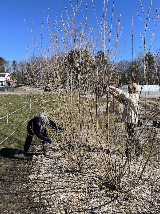 We are almost finished pruning. The willow hedge needed to be thinned and topped. Genevieve and I finished it while battling the wind and had lots of canes to share. Let us know if you would like to plant some. We are also propagating elderberry cuttings to share. We will keep you posted when they are ready to go out into the world.