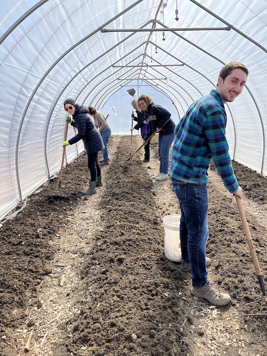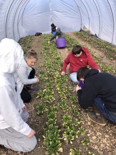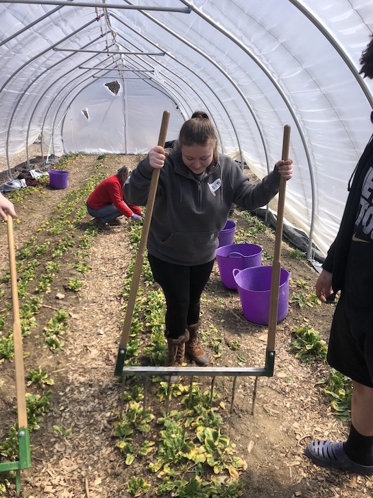 This week, two groups of students from Morse High School came for their first visit of more to come between now and the end of the school year. The first group helped us finish harvesting the last of the spinach which was donated to MCHPP. Our later group got started clearing the spinach tunnel and making it ready to plant again. We are excited to be working with these students over the months of April and May!