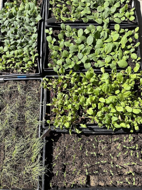 This was the Saturday volunteers project: finish preparing the beds for the next crop and get it planted. Which they did. Thanks, Saturday volunteers–it was a lot of work but the salad turnips got planted and now we wait and watch them grow.