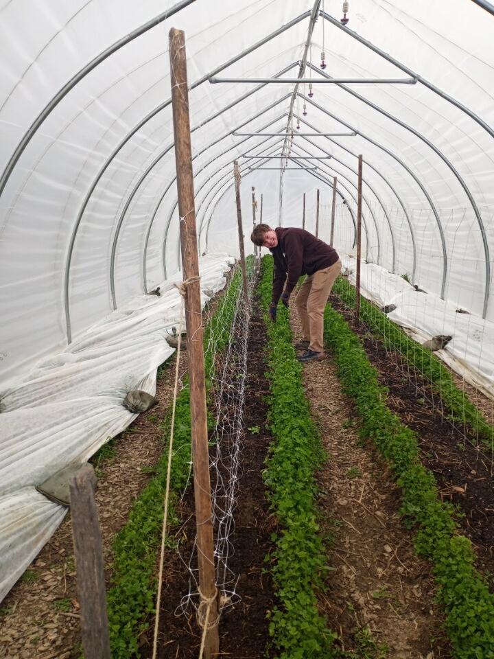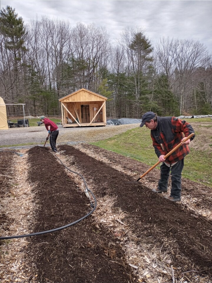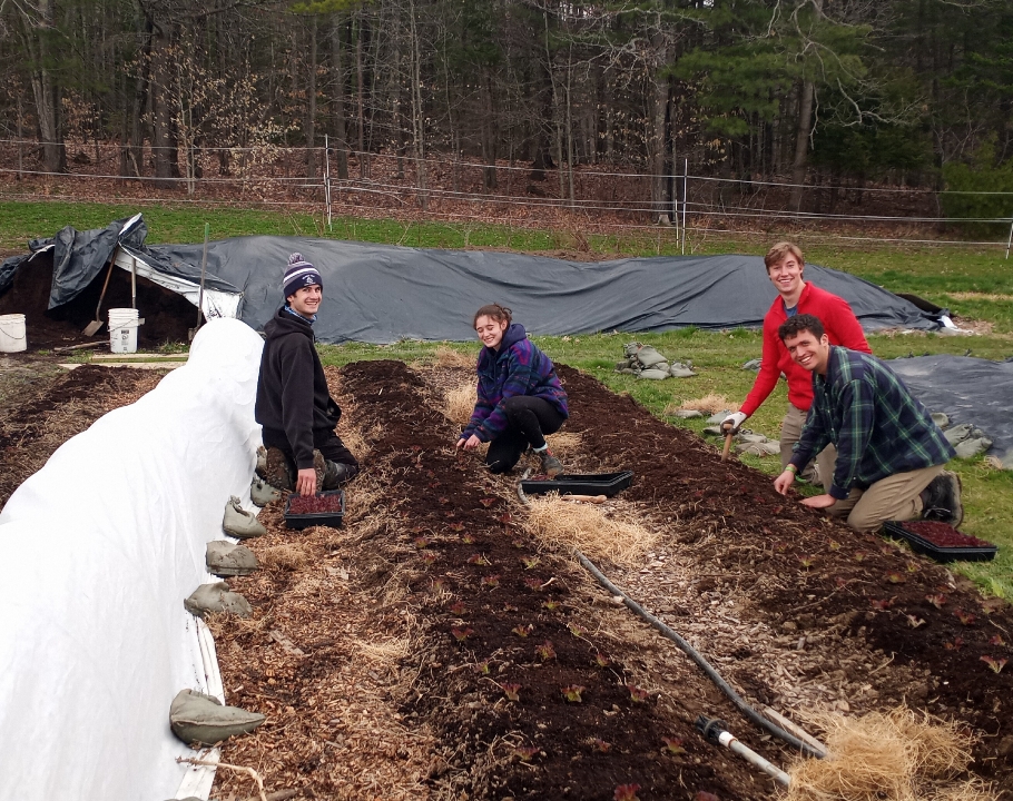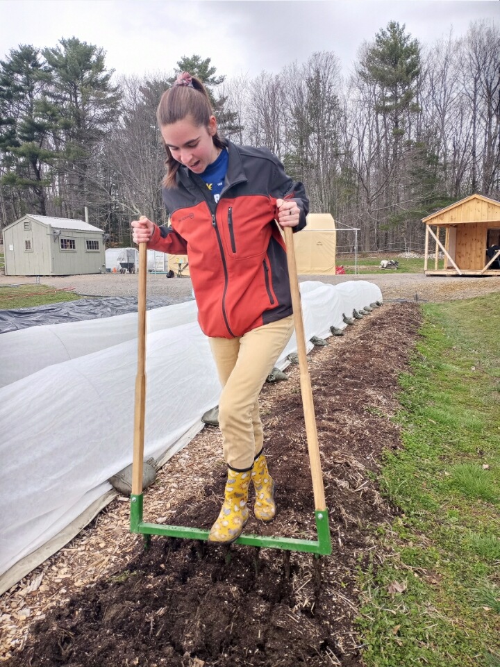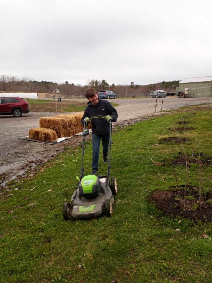 I want to also mention Grady, our April intern from the Waldorf High School in Freeport. Grady is doing his senior internship and has been so helpful this Spring working with Carrie and me to get the farm up and running. He takes on any task with a smile–even mowing! We love having so much kid power!