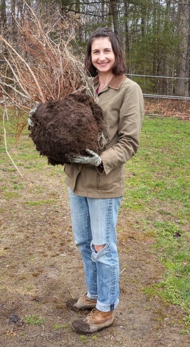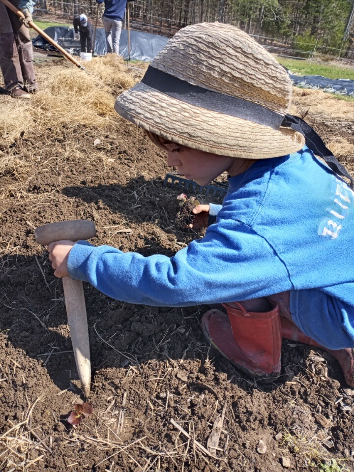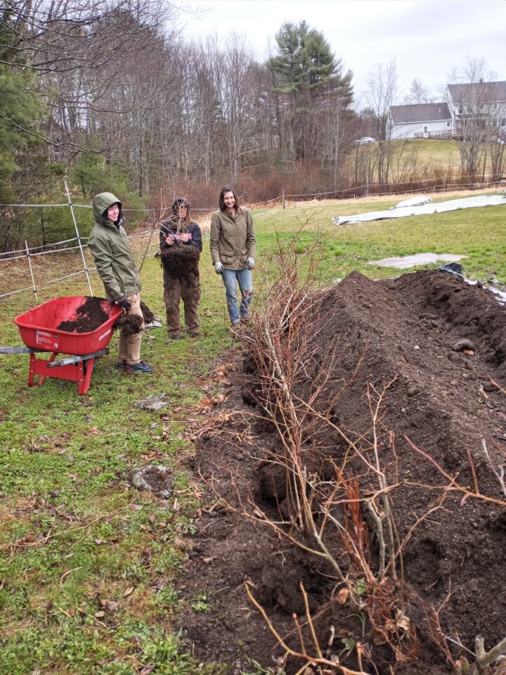 A crew of volunteers went to dig the 20 mature blueberries out of Jim and Terry Howell’s backyard garden on a rainy Tuesday morning. We are holding them in a soil/compost trench until next Friday’s Earth Day celebration at the farm. David Handley will be on hand to teach us more about the planting and care of blueberries. Thanks to the Howells, we will have a blueberry orchard!