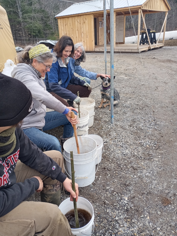 Barbara Shinn came on Saturday and instructed us on how to create a biodynamic 500 preparation with composted horn manure. After being diluted in water, the manure tea needs to be stirred for an hour to aerate it which encourages the organisms to multiply. It is then sprinkled on the beds and the field to enhance the life in the soil.