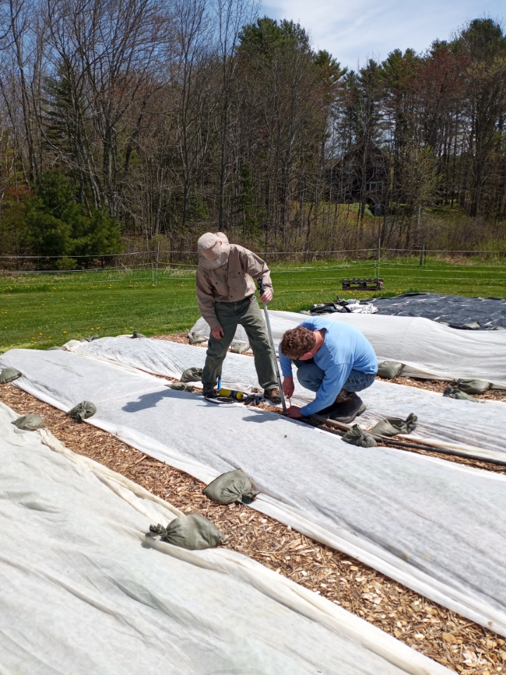 It really warmed up and dried out this week. We have been mulching heavily around all the transplants with cover crop debris, clover clippings, or spoiled straw. This has really saved the transplants from drying out and causing us to hand water.