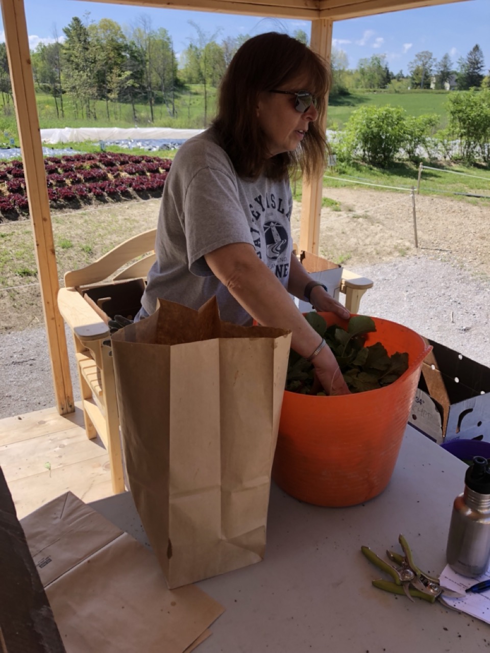 Friday, Peg came thinking, and I quote, “Oh I thought I would just be taking a couple of boxes of LETTUCE.” We filled her pick-up truck with 151 pounds of LETTUCE along with spinach, radishes, and rhubarb.