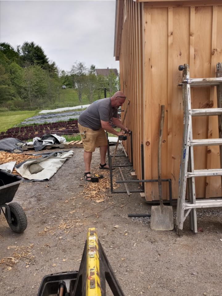 All we have to do is give Bob an idea on how to fix or organize something, and he is on it! Bob went home and fabricated a shelving system to install on the backside of the new tool shed. We went from mayhem to organization.