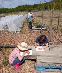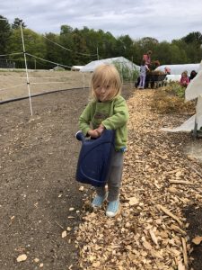 Our 3rd graders came for their final farm visits this week. They saw a plot that needed some weeding and volunteered to tackle it! Too bad this was their last day since we are headed into weed season. Ian showed up with a new hat to lead the work song session, and when I walked by they were singing “Take Me Home, Country Roads.” Being outdoors on a beautiful morning, singing and weeding, life can be good in 3rd grade. Carrie set up a scavenger hunt sending the kids around the farm looking for cover crops and interplantings. As this photo shows, they were taking it very seriously. Thank you to Miss Fox, the moms, and all our 3rd grade friends who came in all kinds of weather to learn about sustainable farming and to volunteer to help send fresh food into our community.