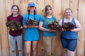 Cam stopped by to say goodbye. She is a friend and was an intern with us several seasons ago. She graduated from Bowdoin this past weekend. Thanks, Cam–we wish you well on your next life adventure. Oh and thanks for helping us harvest some LETTUCE!