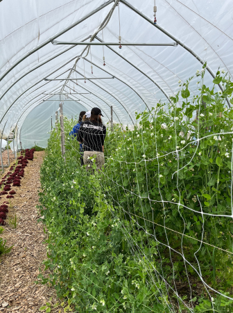 Let’s start with peas. We sent out over 500 pounds of vegetables this week, and peas are now being sent out to the recipients. We have them planted in two tunnels and because Genevieve has been on top of our fertilizing schedule, they are extremely healthy and prolific. We should have peas for several weeks. Libby informed us she was not fond of shell peas. A culinary challenge!