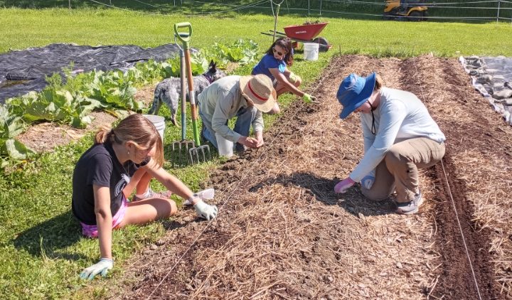 Meanwhile on Wednesday, Carrie was off campus with two of our interns at the Cathance River Education Alliance in Topsham to educate two groups of young campers about the importance of organic matter in soil, and practices that help build it. Taking soil core samples from around the preserve demonstrated the presence of dark soil near the surface fading to lighter soil further down, showcasing Mother Nature’s wonderful ability to amend soil–we are always looking to nature to teach us how to do things right.