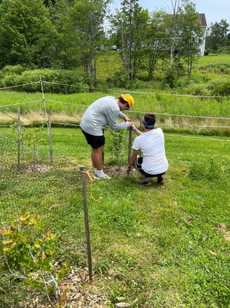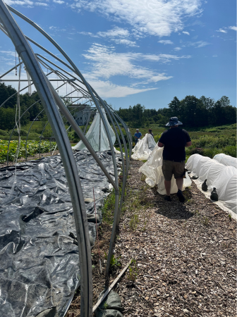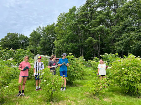 The afternoon Apogee group finished sheet mulching the left field hedgerow, started covering our blueberry bushes with netting, then took on bug patrol! They loved bug patrol! We will have to keep that task in mind for later groups.
