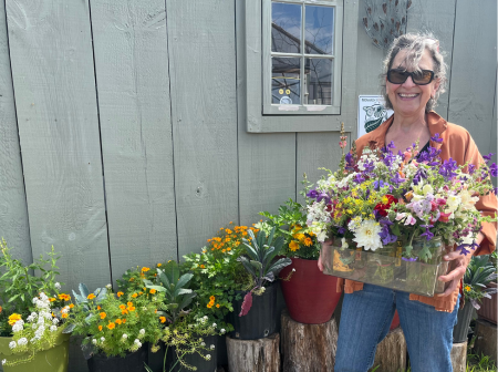 Besides having the two groups on Friday, we sent out our first flower bouquets. These go to the Morning Glory Natural Foods store in Brunswick for donation. Diane and Genevieve worked on the bouquets and Christine delivered them. It’s a bit of a slow start for flower picking, but by next week we should have our “Pick A Bouquet and Donate Today” sign out at the farm. It’s mostly zinnias, snapdragons, and dahlias that we are picking right now.