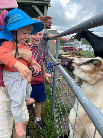 Goat therapy is always a great way to end your volunteer shift. Sometimes it’s fun to try out those cabbage leaves with a friend!