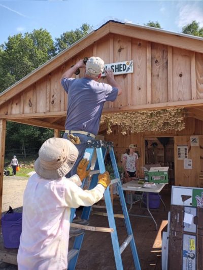 Friday was so busy! We had two groups of youth from Apogee come to volunteer, who weeded various plots around the farm and flipped tunnel 5 in the heat of the afternoon, planting beet and cucumber seedlings. Rachel McDonald, a friend of Growing to Give, allows me to burden her with being one of our volunteer sign painters. She painted two signs for us this year designating the sheds. We now have an official GARDEN SHED and TOOL SHED. Thanks, Rachel, for putting up with my requests. Everyone thinks the signs are lovely, and the Fix-It Team was happy to install them.