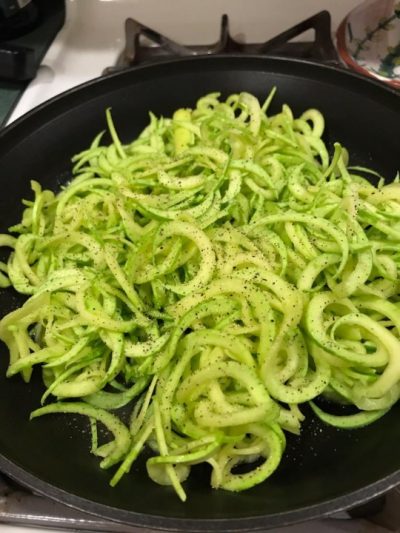 Cathy went into the Rimol greenhouse to cut a Tromboncino squash and promised to give me feedback on how she cooked it. We are in love with its bell-shaped flowers. Here is her delicious looking plate of Tromboncino noodles.
