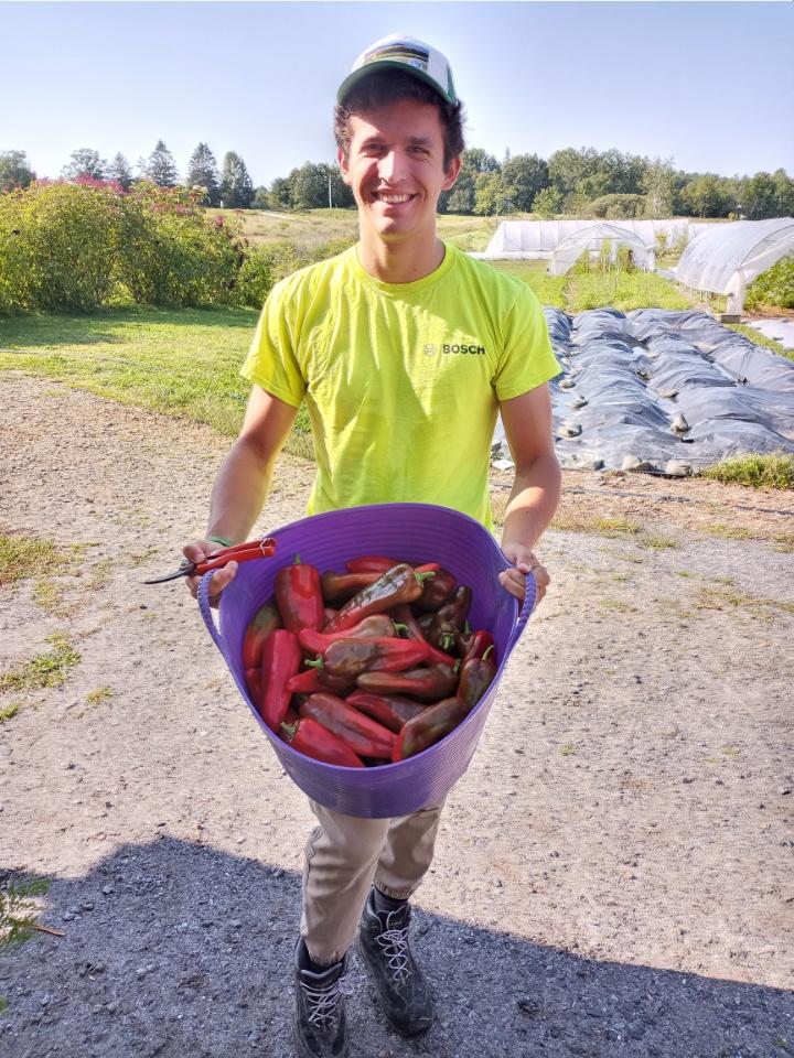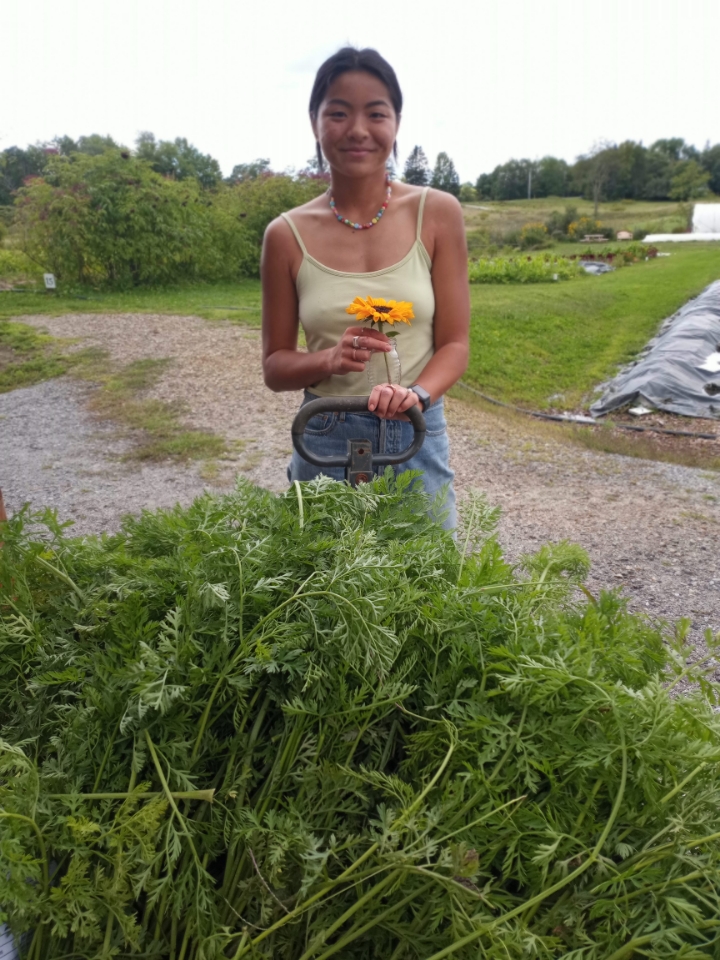 Shanti and Anna also came to help us on Friday. They helped by gleaning carrots and were so happy to find so many big ones. Shanti thought he could hide behind a handful, but came out to show off his carrots in a photo with his Mom. We love these little helpers.