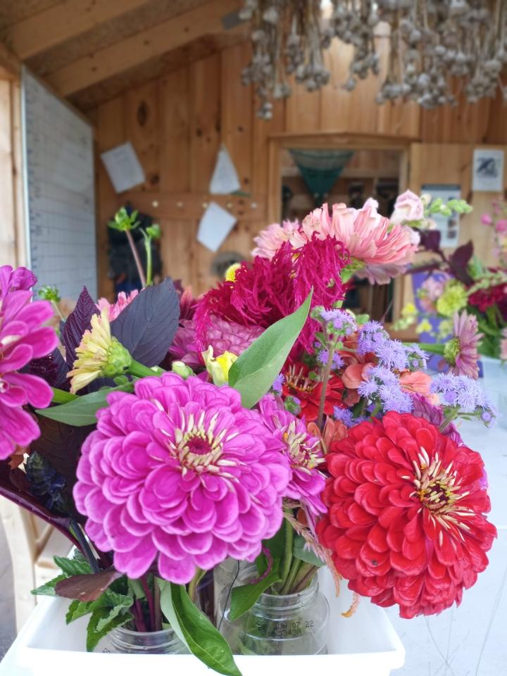 I have been adding photos of the beautiful flower bouquets made by our volunteers to my weekly report for most of the summer. I would like to give a shout-out to Morning Glory Natural Foods store in downtown Brunswick–the destination of these flowers and a Partner with us in feeding our community! In 2019, Morning Glory came on board as one of Growing to Give’s most generous business partners. Their support continues to increase, and their dedicated staff help tell our story.