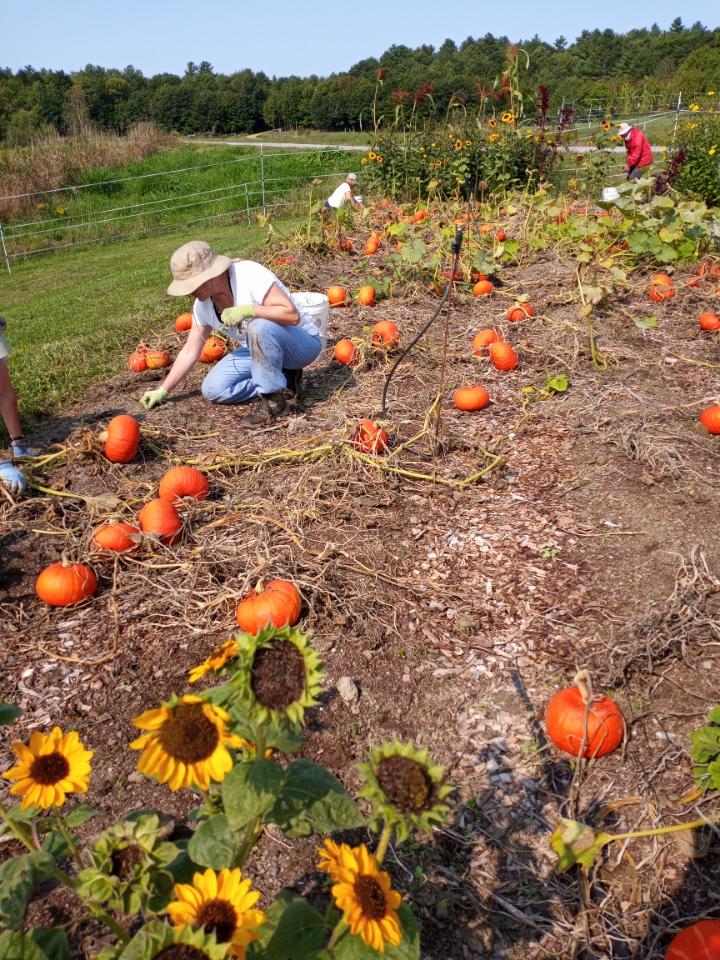 We had another bountiful harvest again this week–over 1,000 pounds donated, which edges us towards 12,000 so far this year. The Monday gleaners came on Tuesday and braved the still wet conditions from the inch and a half of rain we got on Labor Day. A few of them walked away with squash prizes. Don’t they look happy?!