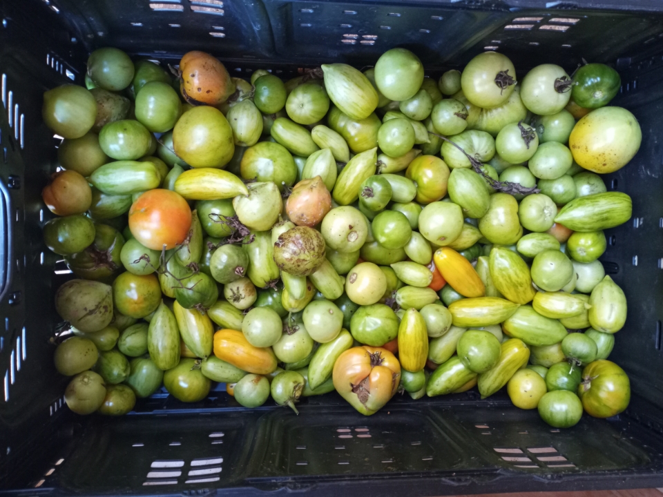 We accomplished a couple of big tasks with our Saturday volunteers. Cleaning out more tomato vines, planting lettuce, and sowing cover crop mixes. Carrie wanted to experiment with sowing a cover crop mix directly into squash vines still in the garden. The squash needed a little more time so everyone helped weed, sow the seeds and then rake them in the best they could amongst the vines. This way we are ahead 2 weeks with getting the seeds in the ground.