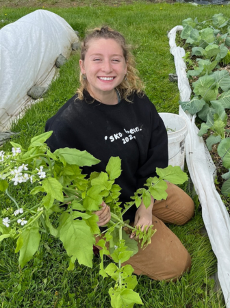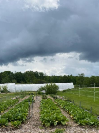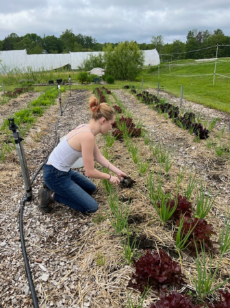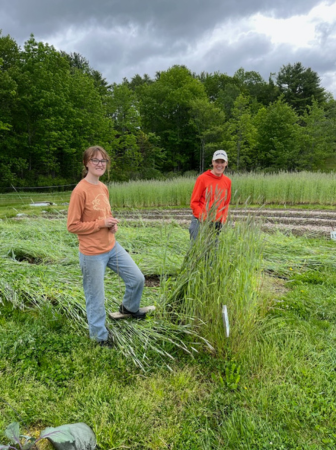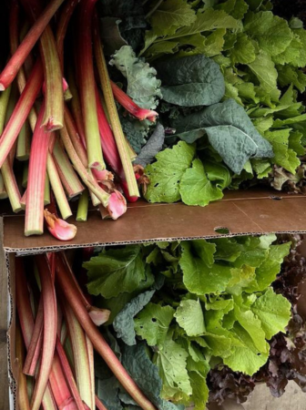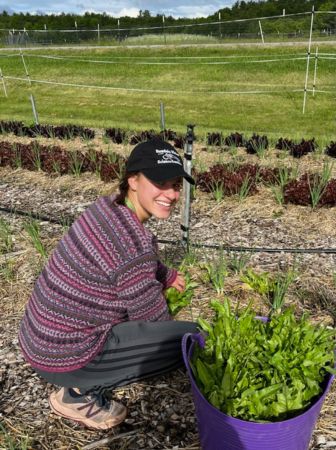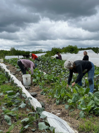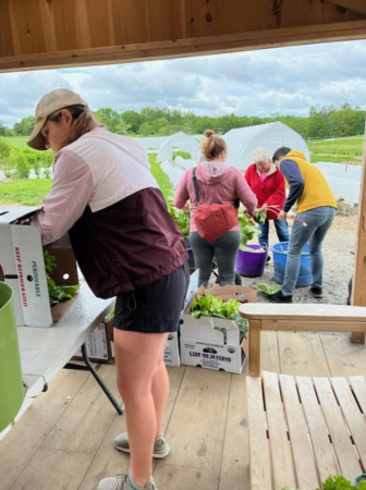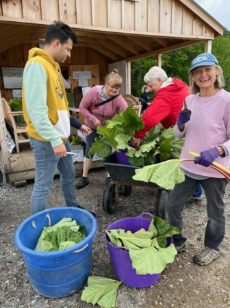 We welcomed two more interns from Bowdoin College–Neena and Libby. They jumped right in and helped us glean on Wednesday. We actually had a lot of help gleaning that day and sent out box after box of lettuce, chard, kale, Hakurei, and rhubarb. Riley is showing off a lettuce bouquet with five varieties, all equally delicious!
