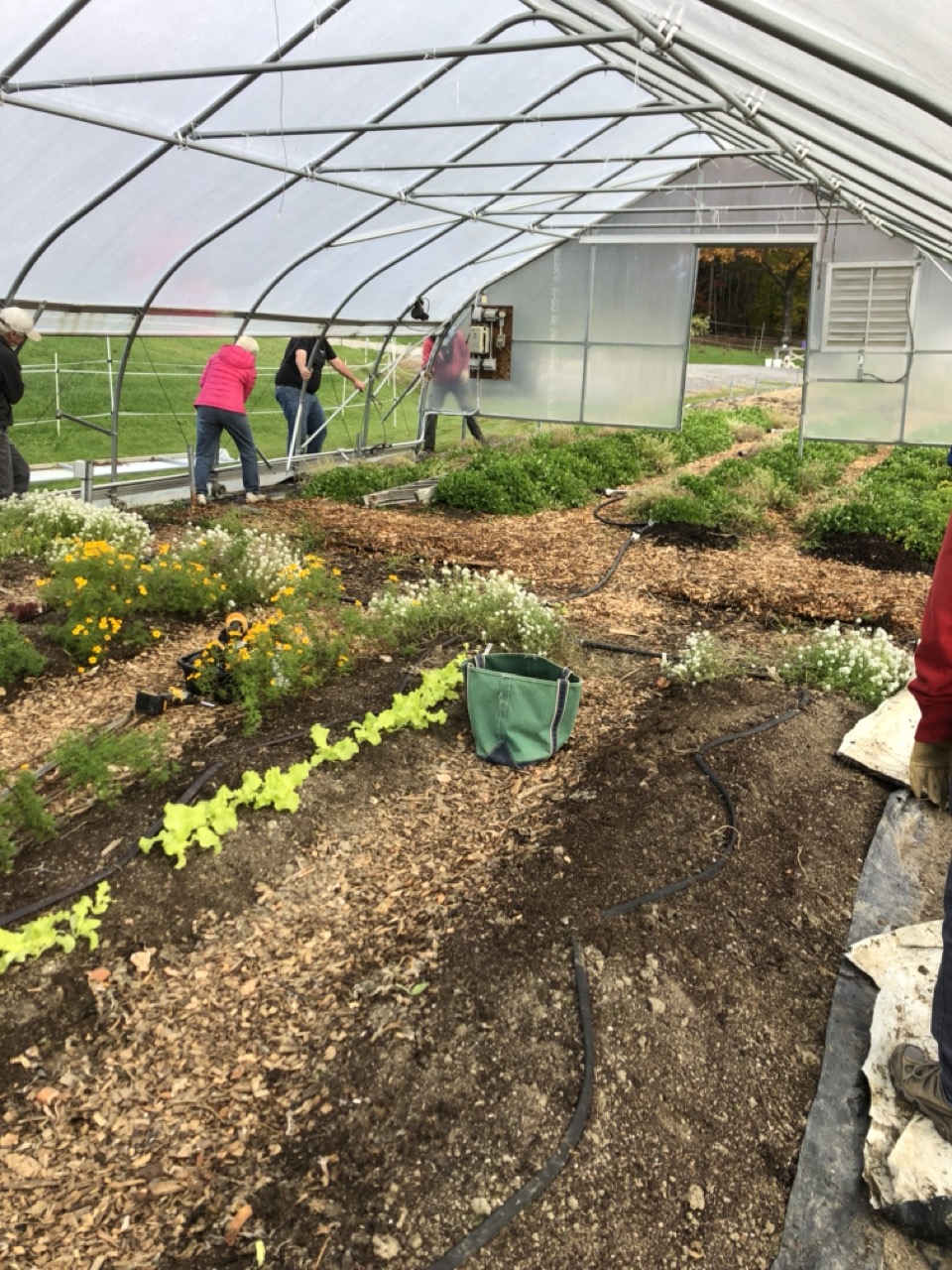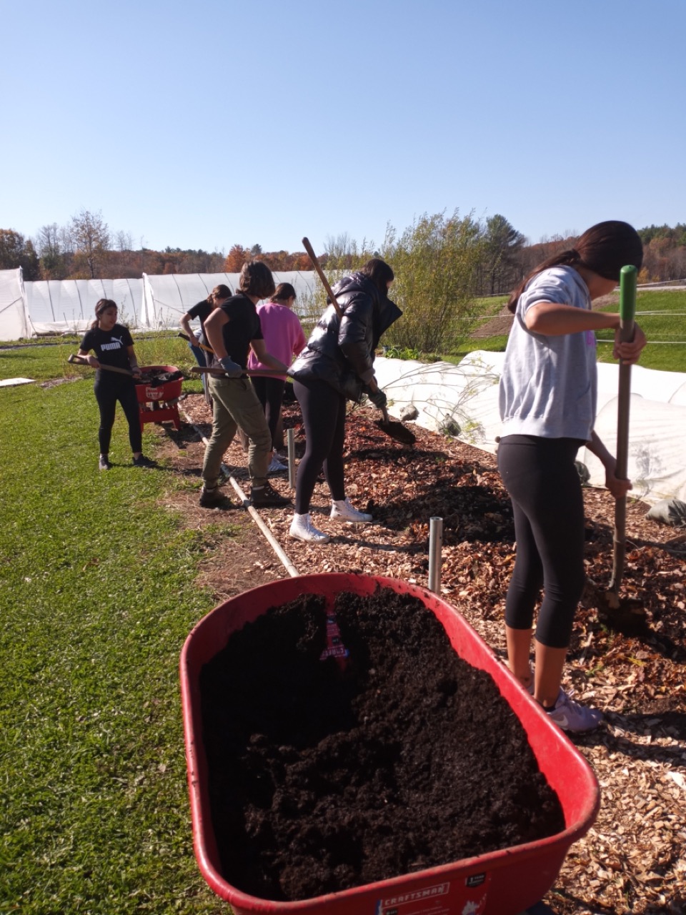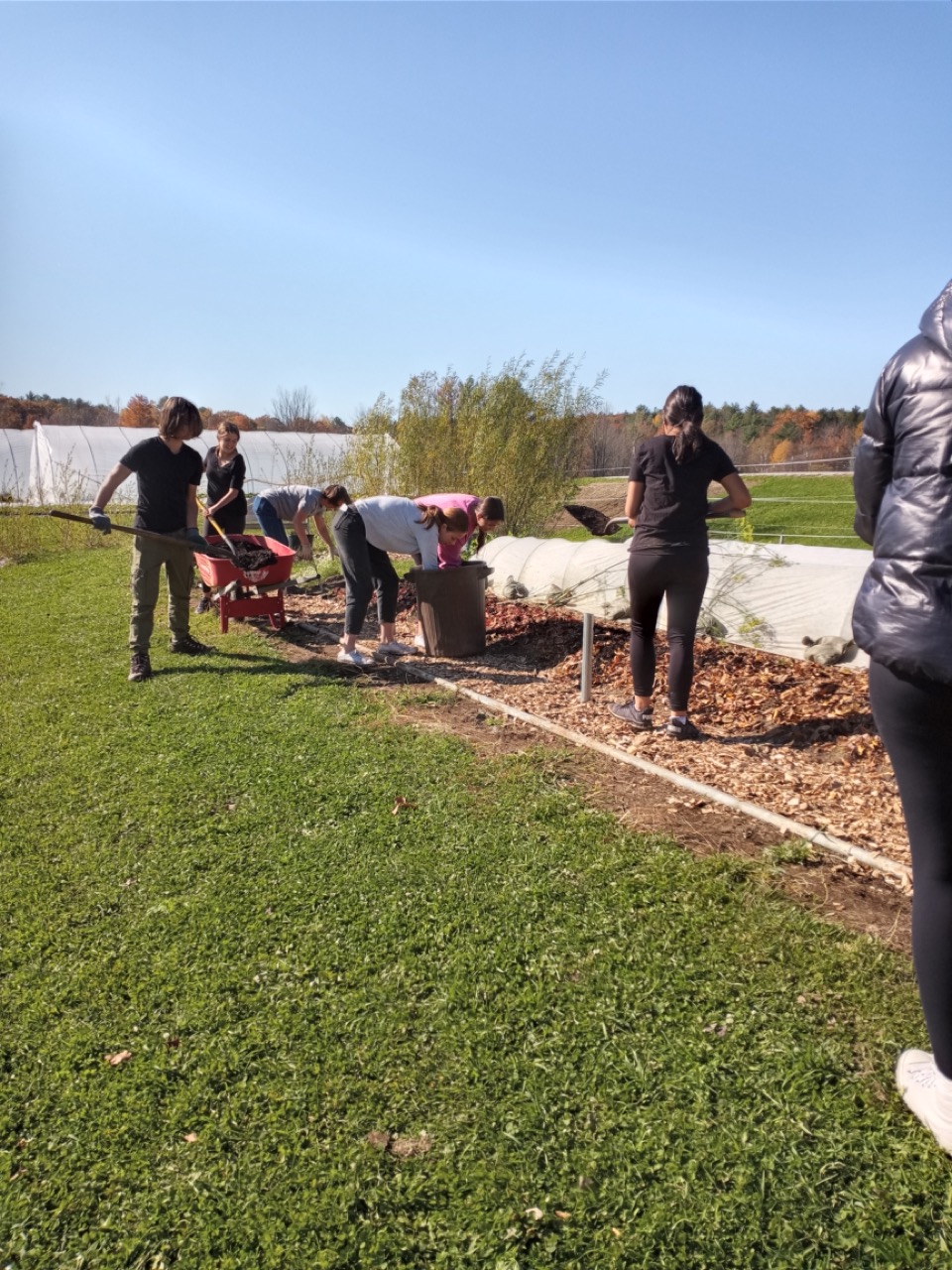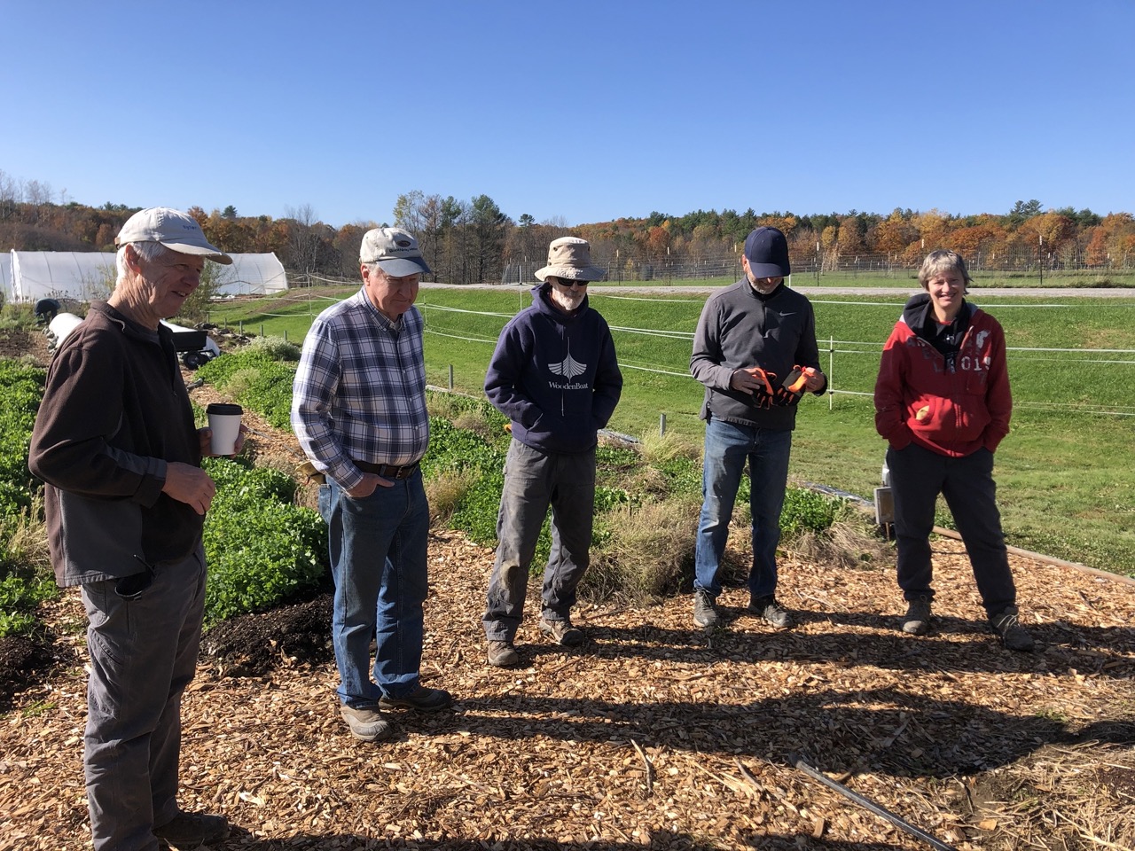 Saturdays are always busy, and we accomplish so much since we usually have so many energetic volunteers. This week the dahlias got dug up and stored on a tarp to dry. Wood chips were added to the paths, the garlic plot was prepped for next week’s scheduled planting, and then the Hebron Academy students arrived. This was such a fun group of young people–exchange students from Mexico and Belarus. Some had never been on a farm before. They were excited to be shown around as I explained who we are and what we do. They loved tasting the baby carrots pulled right out of the ground, and they asked thoughtful questions about the foods they were tasting. Then they jumped in and helped frame some plots with wood chips, worked on more mulching and laughed and joked with each other as they worked. (I’m assuming they were joking because it was all in Spanish.🙂) What a joy to have them visit us and a great way to end the week.