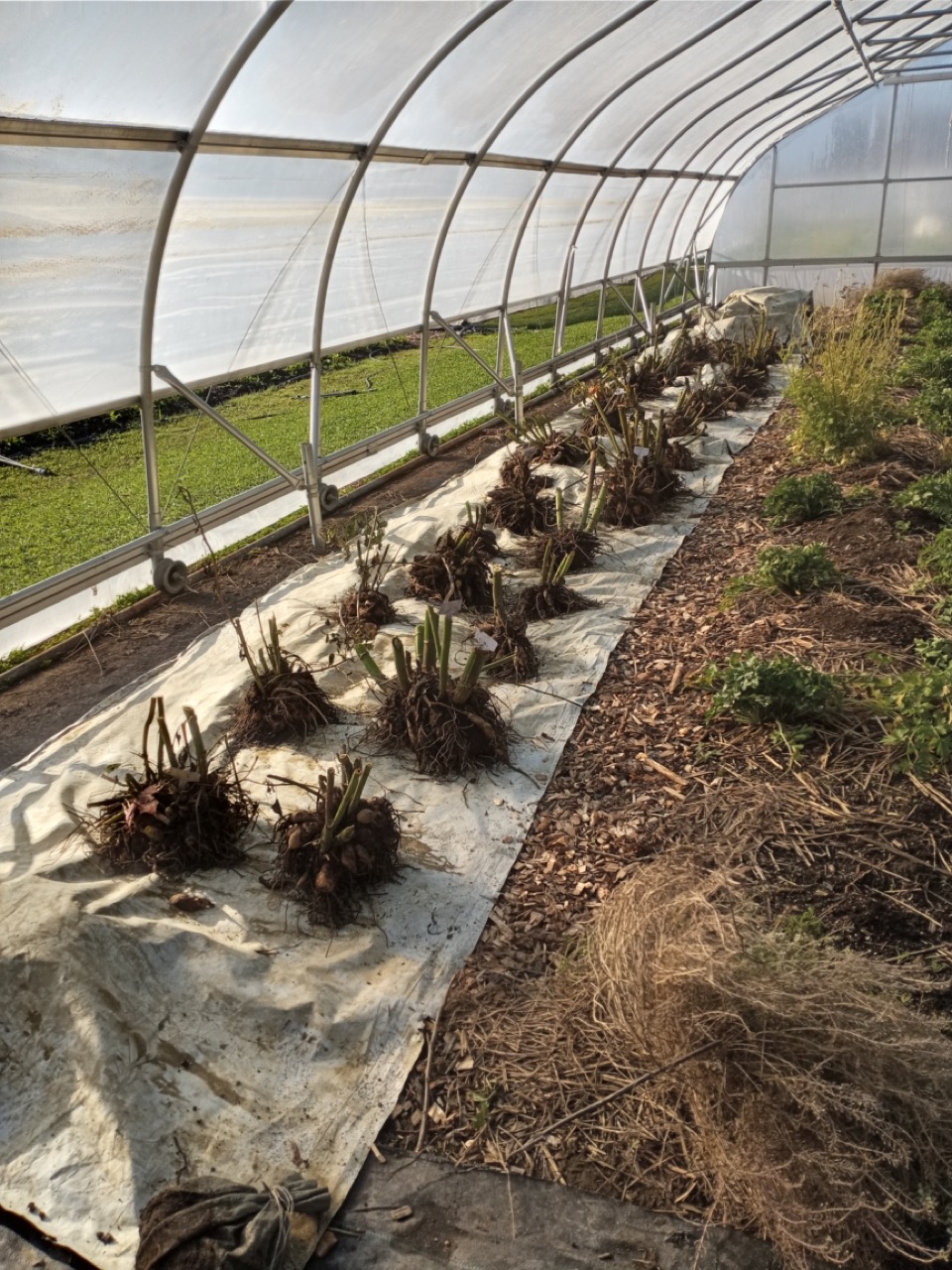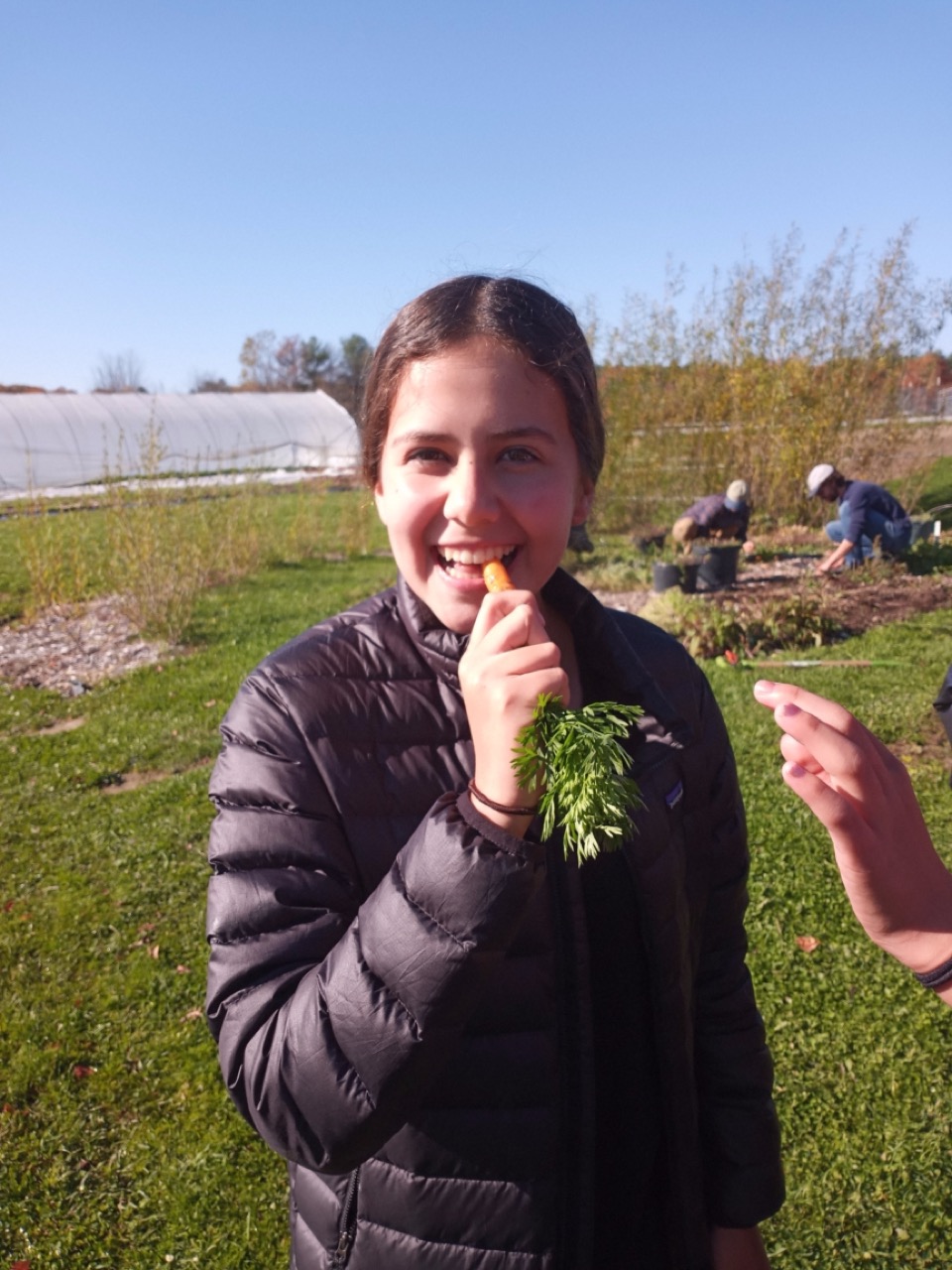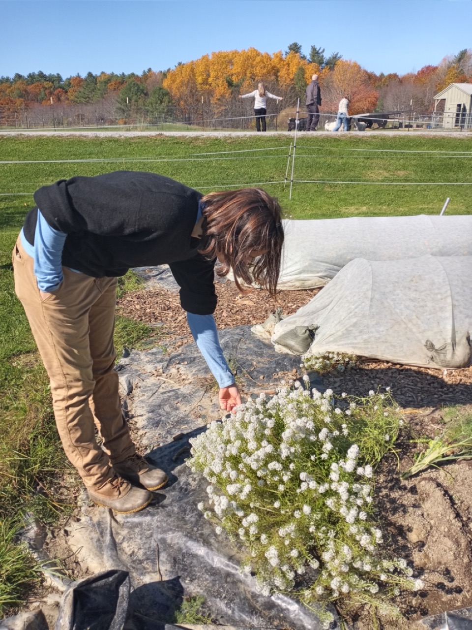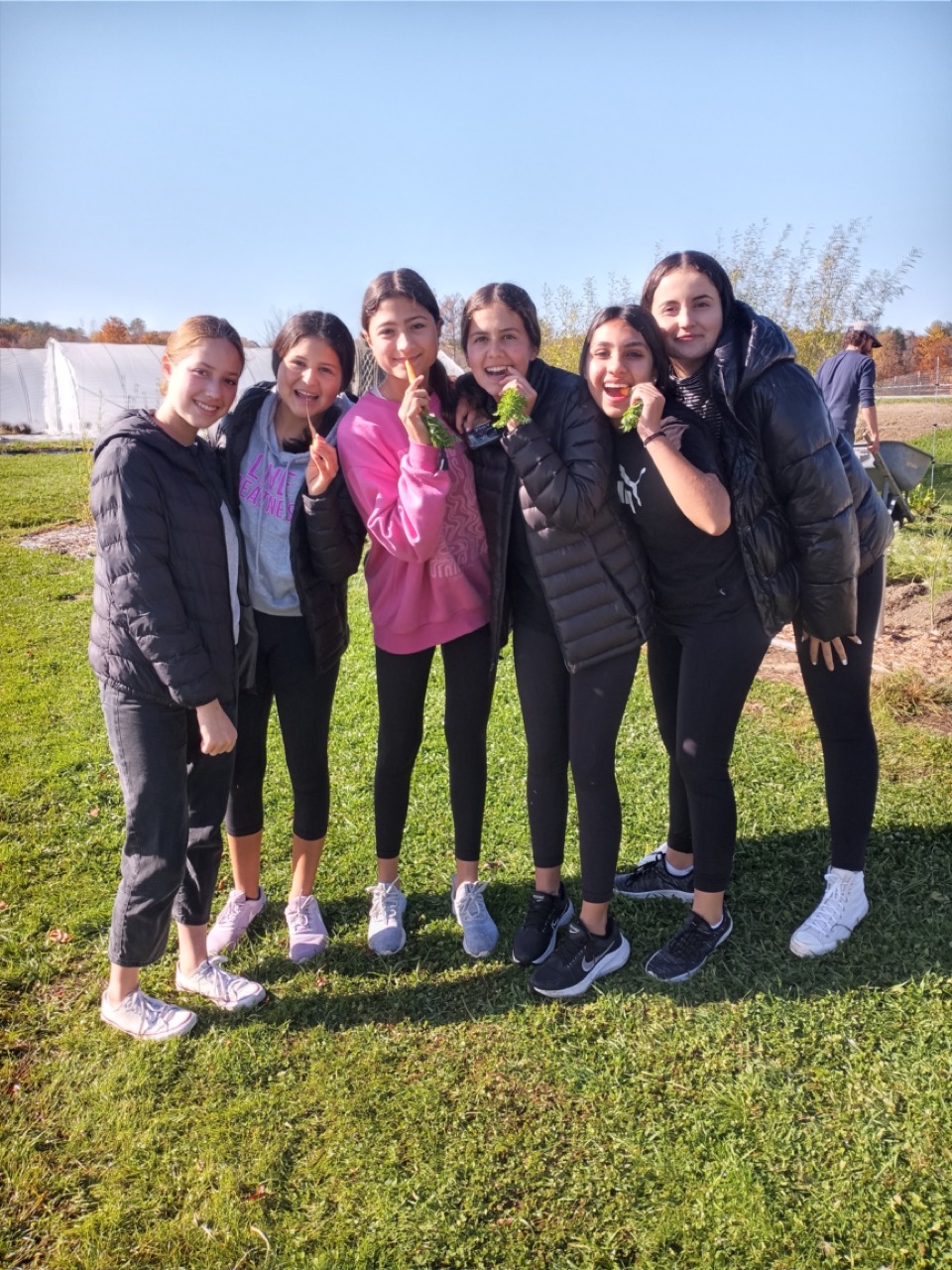 Saturdays are always busy, and we accomplish so much since we usually have so many energetic volunteers. This week the dahlias got dug up and stored on a tarp to dry. Wood chips were added to the paths, the garlic plot was prepped for next week’s scheduled planting, and then the Hebron Academy students arrived. This was such a fun group of young people–exchange students from Mexico and Belarus. Some had never been on a farm before. They were excited to be shown around as I explained who we are and what we do. They loved tasting the baby carrots pulled right out of the ground, and they asked thoughtful questions about the foods they were tasting. Then they jumped in and helped frame some plots with wood chips, worked on more mulching and laughed and joked with each other as they worked. (I’m assuming they were joking because it was all in Spanish.🙂) What a joy to have them visit us and a great way to end the week.