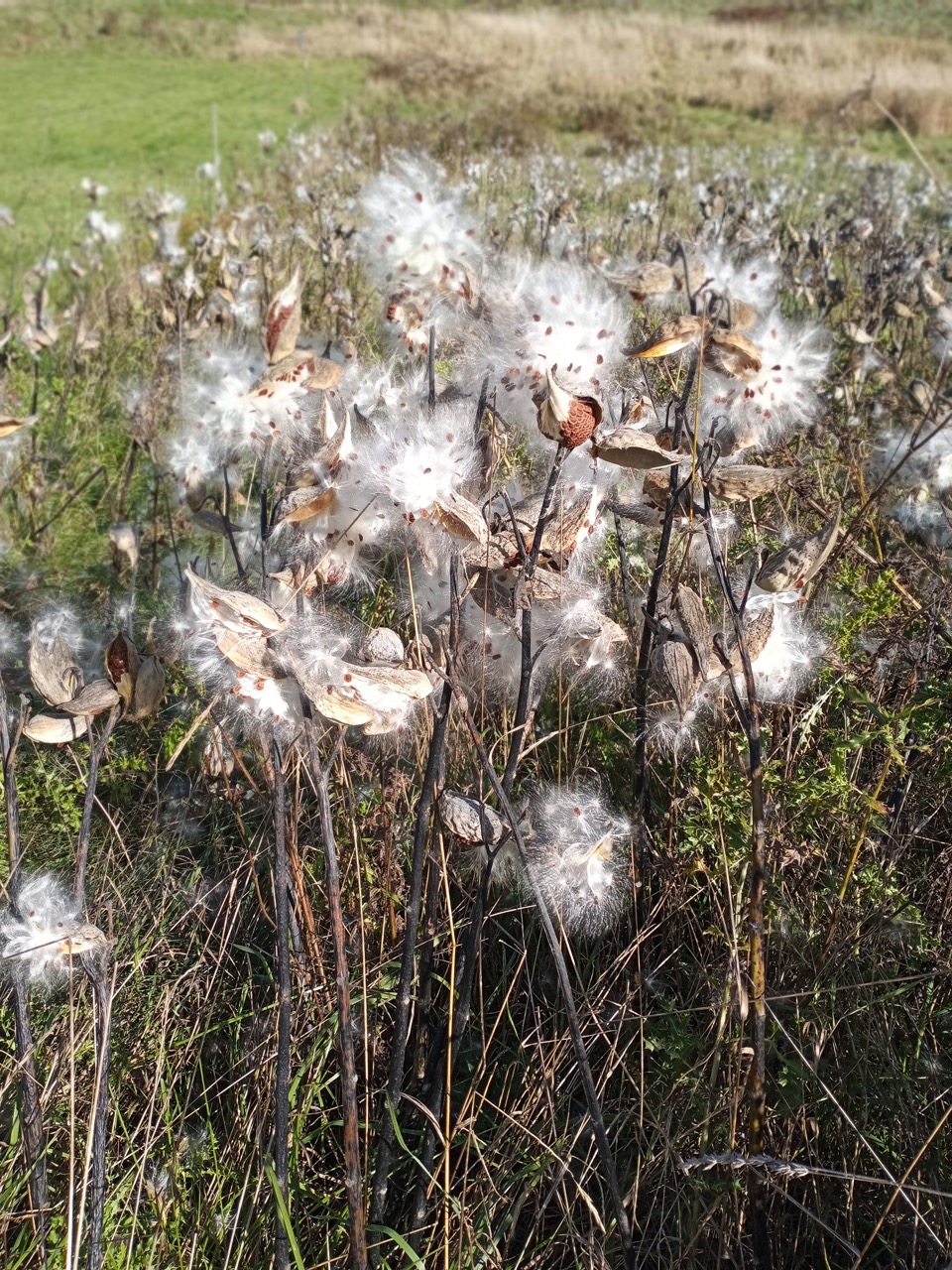No, not that white stuff, this white stuff. The milkweed pods were bursting open Friday sending their airborne seeds all over the farm. It looked a little bit like that other white piece of nature, but the 60 degree temperatures would not allow even the thought of a snowflake. One of the requirements of being a Monarch Way Station is abundant milkweed. We’ve got that covered!