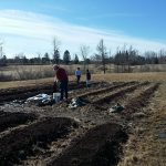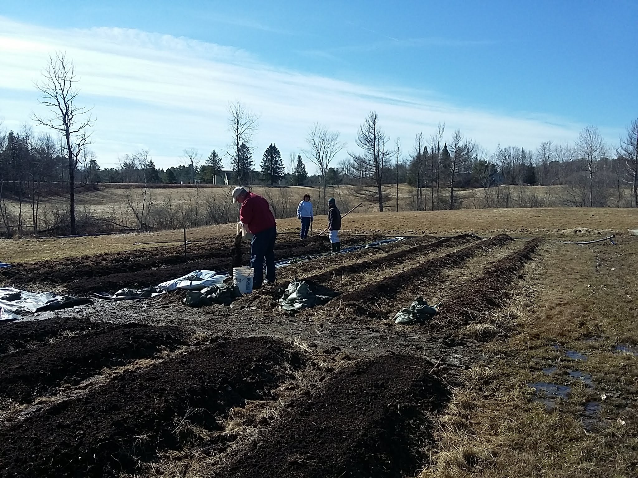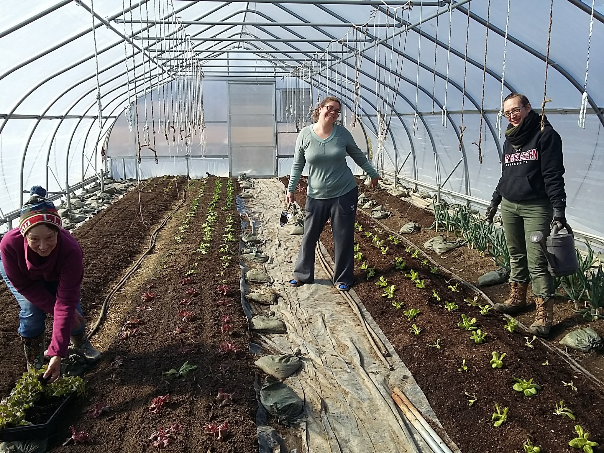 Compost was spread, tarps were laid, more lettuce and radishes planted. The tarps serve two purposes: heating up the soil and killing off any germinating weed seeds. They stay in place for 30 days then get moved to a new location. It’s a lot of fun moving them in high winds!