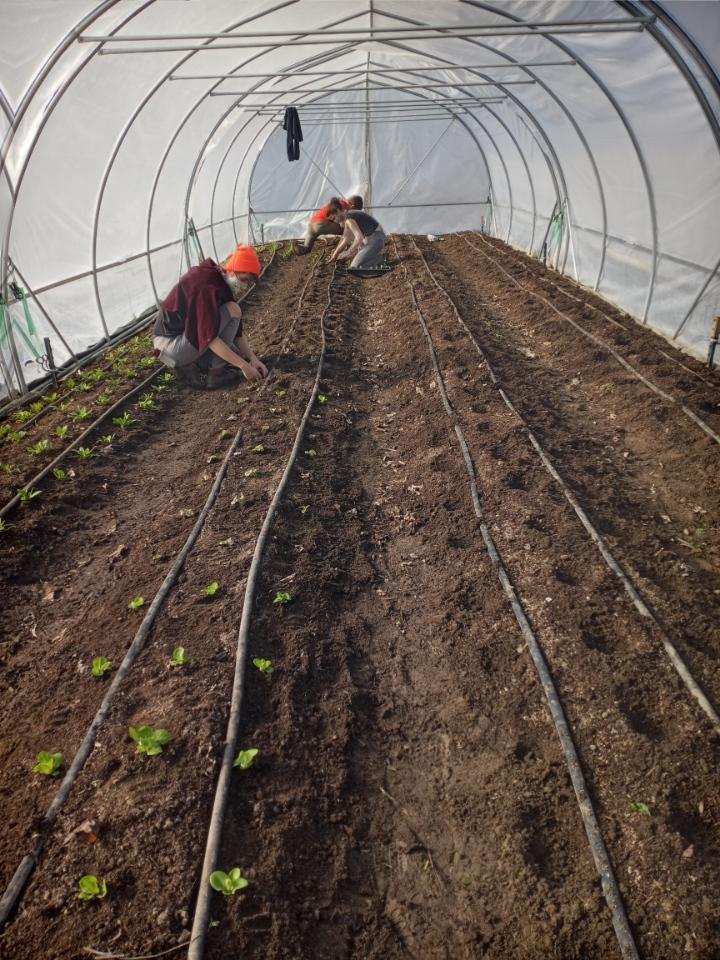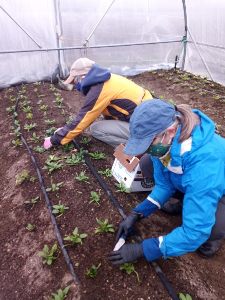 Another tunnel is filling up with lettuce. A nice place to be on a chilly Maine morning.