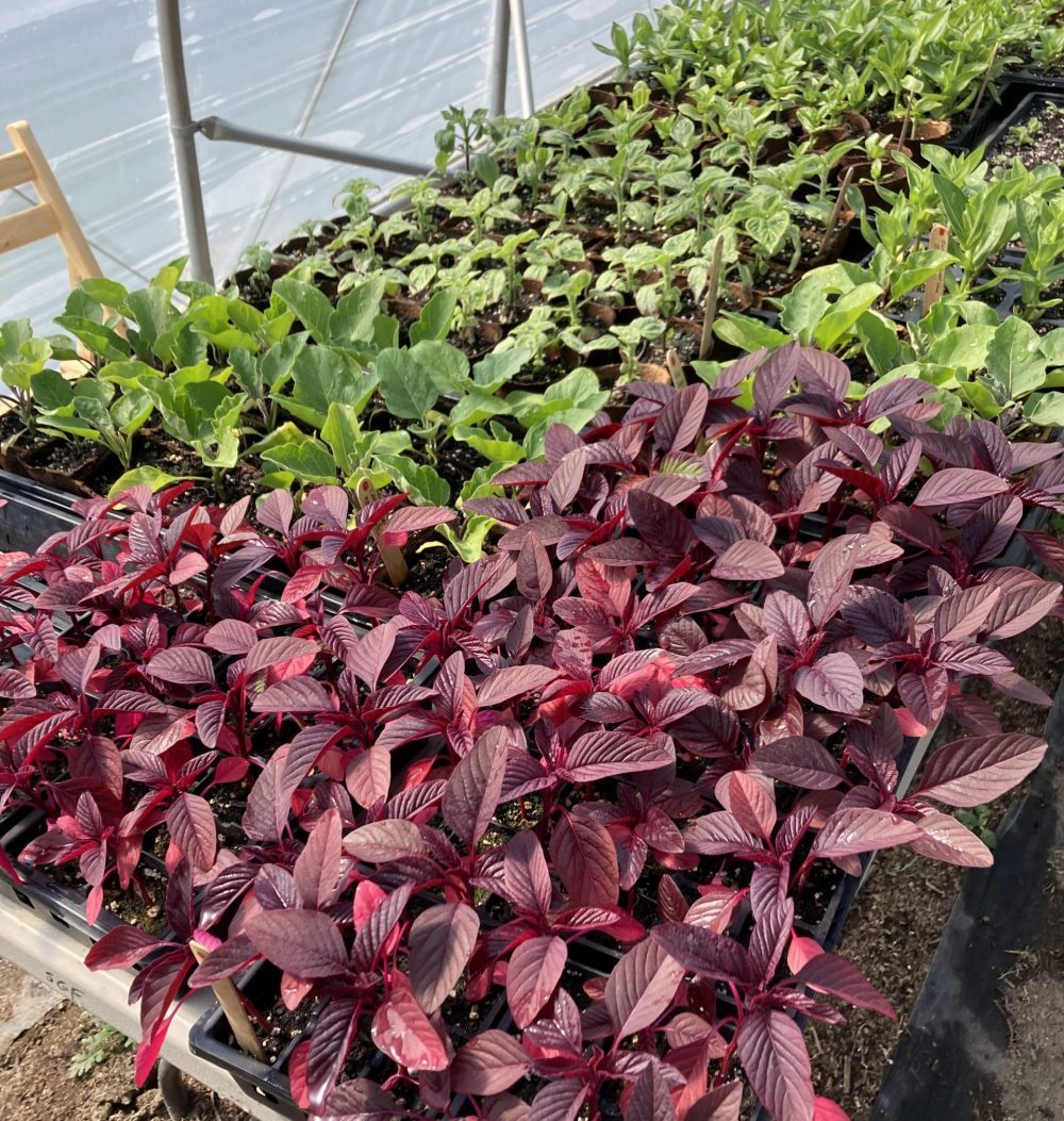 The Saturday volunteers cleaned out the spinach tunnel and we were able to start planting cucumbers as the next succession crop. Hakurei turnips and marigolds will be planted alongside the cukes and the soaker hoses. We had 16 volunteers on Saturday, as the cukes were being planted another group were planting more cabbage. These beds also got onions, alyssum, and lettuce. Two more volunteers spent the morning watering all our seedlings! These are for the farm and the plant sale, which is this week. It will be good to say goodbye to all these extra seedlings in our care!