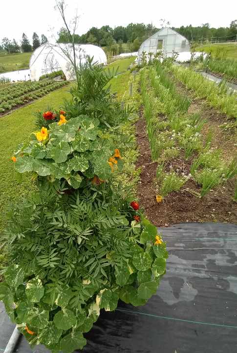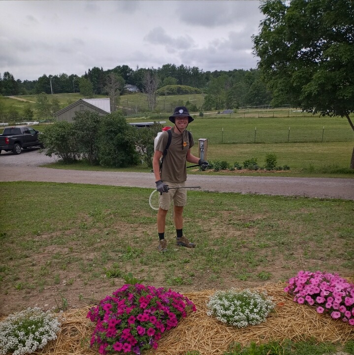 Tucker was all set to be on the set of GhostBusters with his backpack sprayer. He was headed to give our flower garden a bloom booster fertilizer spray. Our flowers are starting to produce more buds and the dahlias are way ahead this year. These will all be part of our “Pick a Bouquet and Donate Today” fundraiser for G2G. We will keep you posted on availability.