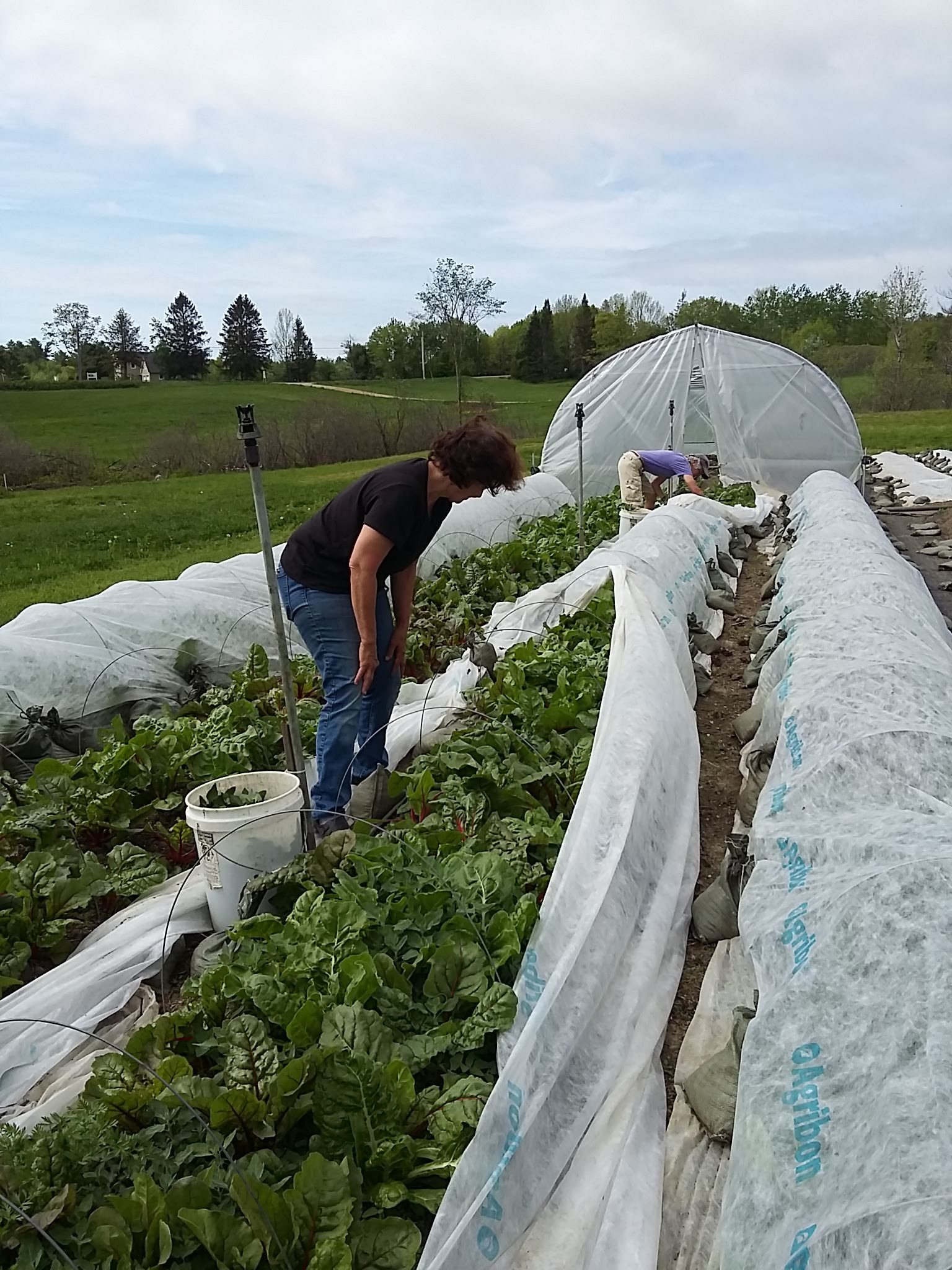 Cathy and Rebecca pulled out a few unwanted intruders from the chard beds. The intensive planting shades out most of the unwanted seeds from germinating.