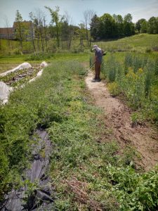 Carrie finished the new beneficial hedgerow this week with help from our WWOOFERS and B.J. Carrie was on a mission to finish it before she left for her wedding and honeymoon. We sent her off with a lettuce bridal bouquet! We miss her already, but so happy for her and Daniel. 🙂