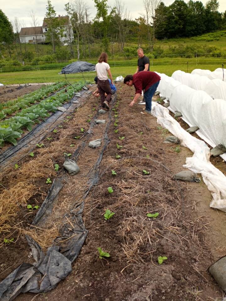 Plants in the ground this week included 200 hundred Napa cabbages. Here are the crew planting, after the beds were broad forked and the cover crop raked into place to be used as mulch. Saturday volunteers planted 1,800 beet plants. Beets are a multiplant and we started 3 seeds per soil block. The plants grow away from each other without impacting the size of the beet. This way three times as many plants can be grown in the same amount of space,