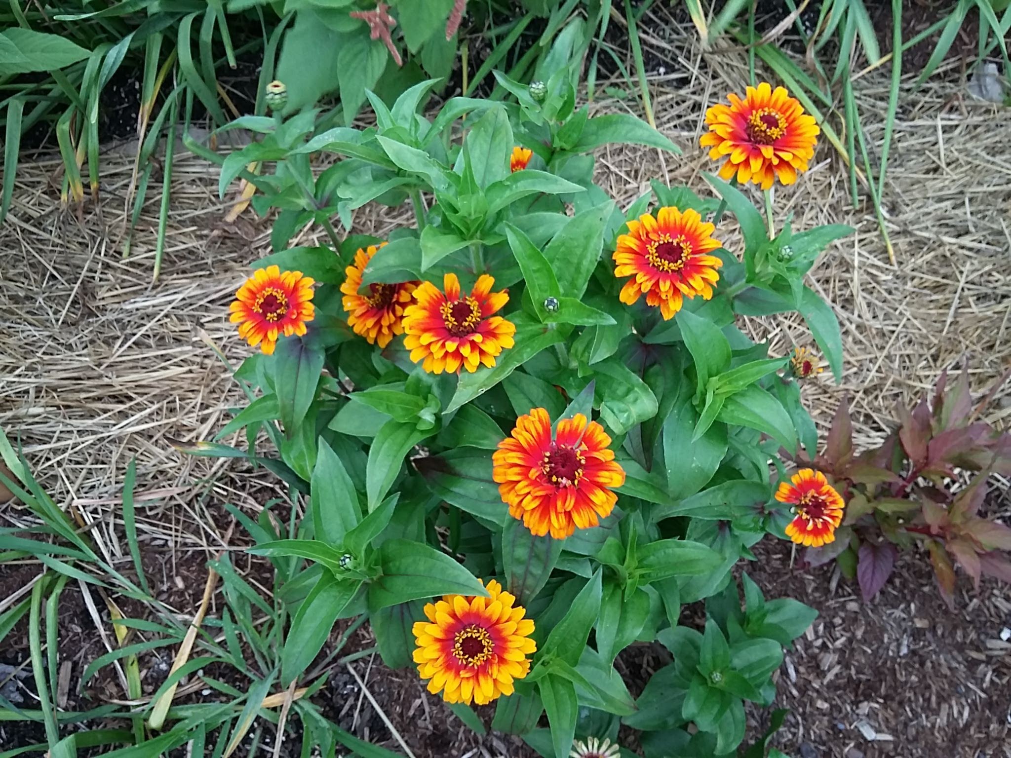 An update on the zinnia post from a couple of weeks ago. I talked about pinching the seedlings when they were transplanted and shared a photo with lots of flower buds. Well, here is an example in full color. One drawback is the stems are shorter.