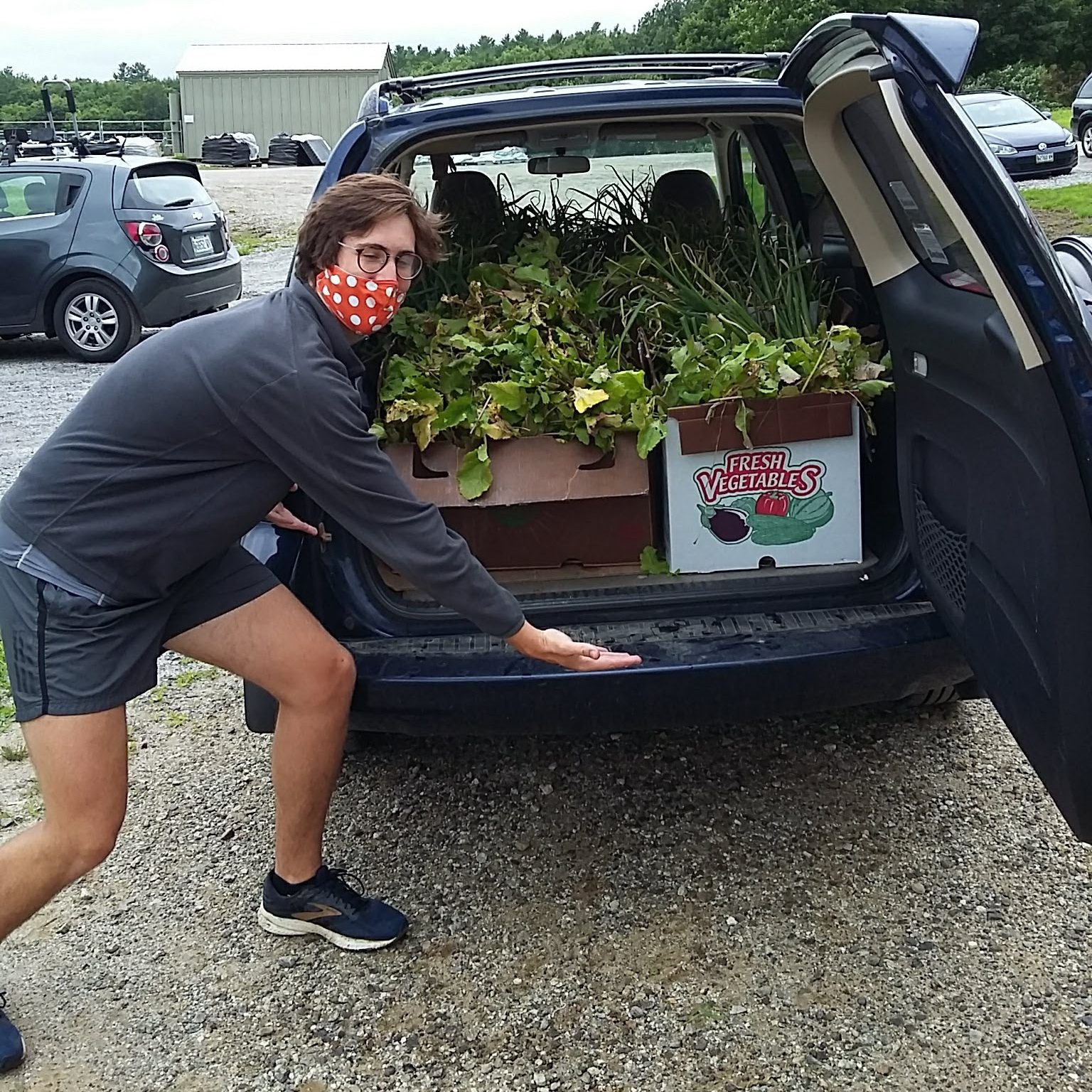 This week’s headliner was onions and more onions! Lots of nice big white onions were sent out in all three gleanings this week. We literally packed Dalton’s SUV with boxes to be delivered to MCHPP in Brunswick on Friday. Dalton is an intern from Bowdoin College working this summer with Merrymeeting Gleaners. He comes twice a week and helps us with gleaning, delivering, and anything else we might ask him to do. Thank you, Dalton!