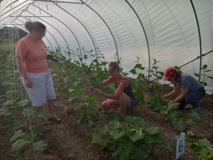 Thanks to all who came to volunteer this week. The heat and extreme humidity made it tough to work outside under the sun. We are feeling the loss of our Bowdoin crew as the workload continues and the heavy harvesting is just starting. If you feel like you can spare a couple of hours with us we would appreciate it. There is lots of laughter and good conversations going on as we tackle the chore board.