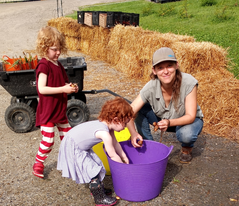 We had the good fortune to have two little sisters as gleaners this week. They came with their mom and did a great job harvesting and cleaning onions. After showing them what to do they went right to work and were having fun getting dirty, pulling the harvest wagon and getting all wet at the wash station. They said they would be back. I hope so, having little ones around makes us all smile.